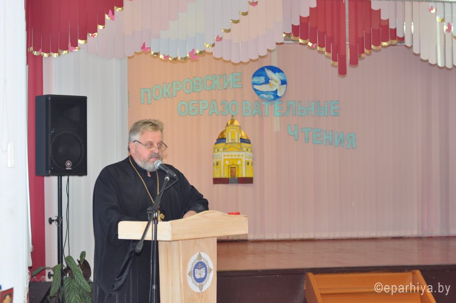 3 ноября 2017г. в стенах ГУО "Средняя школа №2 г. Чечерска" состоялось пленарное заседание II районных Покровских образовательных чтений "Святыни Чечерского края". С приветственным словом к участникам Чтений выступила заместитель председателя Чечерского районного исполнительного комитета Басаргина Ю.С. Ею было отмечено, что подобное заседание - это шаг на пути реализации программы сотрудничества Белорусской Православной Церкви и государства. Доклад директора ГУО "Чечерского районного центра творчества детей и молодёжи" Морозова А.Л. "Человек с необычной судьбой" с просмотром документального фильма, подготовленного учениками ГУО "Полесский я/c - c/ш Чечерского района" вызвал у всех присутствующих много положительных эмоций. С идеей восстановления храма в Полесье, разрушенного ещё в 1959 году, вернулся в родные места капитан I ранга Куцаков Николай Михайлович. Это изменило жизнь офицера и его односельчан. В заключительном слове благочинный Чечерского округа протоиерей Георгий Шмидов от лица всего духовенства Чечерского благочиния тепло поблагодарил представителей районного исполнительного комитета за помощь в организации Чтений, администрацию ГУО " Средней школы №2 г. Чечерска" за радушный приём в своих стенах участников заседания. На память всем участникам были вручены журналы "Сретение". |