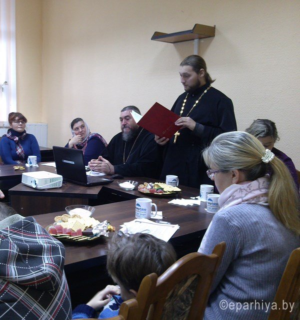 4 ноября 2016 года по благословению Преосвященнейшего Стефана, епископа Гомельского и Жлобинского, в рамках II областных Свято-Покровских образовательных чтений «Гомельщина: 1917-2017 – уроки столетия», Отделом по социальному служению и церковной благотворительности епархии совместно с учреждением «Гомельский городской центр обслуживания семьи и детей», в конференц-зале центра была проведена секция по теме: «На рубеже столетий: взаимодействие Церкви и государства в возрождении православных традиций белорусской семьи». В работе секции приняли участие: настоятель прихода храма Святого благоверного князя Александра Невского в г.Гомеле, председатель социального отдела епархии, протоиерей Владимир Силенко, настоятель прихода храма Вознесения Господня в д. Грабовка Гомельского района иерей Виталий Партий, координатор социального отдела епархии Машковская А.М., специалисты по оказанию социальной и психологической помощи семьям и детям учреждения «Гомельский городской центр обслуживания семьи и детей», координаторы приходов храмов г.Гомеля, а также представители многодетных семей. Вначале протоиерей Владимир Силенко выступил с докладом на тему: «Святые царственные страстотерпцы – пример истинной православной семьи». Затем иерей Виталий Партий поделился своим личным опытом жизни в многодетной семье. Машковская Анна Михайловна ознакомила всех присутствующих с опытом работы по оказанию священниками и мирянами духовной, психологической, благотворительной, социальной и материальной помощи и поддержки нуждающимся многодетным семьям, а также затронула тему постепенного воцерковления подопечных многодетных семей, организации паломнических поездок и др. Координатор прихода храма Святого благоверного князя Александра Невского в г.Гомеле – Миронова Г.В. поделилась опытом работы прихода храма с многодетными семьями и другими категориями семей. Также все присутствующие координаторы приходов храмов г.Гомеля рассказали об их опыте работе с семьями. Специалисты центра Гришечкина Л.И., Козловская Е.А., Козлова Е.В. рассказали об организации и проведении для семей конкурсов, выставок, встреч, бесед, посвященных церковным православным праздникам: Рождества Христова, Пасхи, Покрова Пресвятой Богородицы, а так же приуроченным к государственным праздникам: Дню семьи, Дню защитников Отечества, Дню Матери, Дню защиты детей и др., с целью формирования нравственных ориентиров у родителей и детей». В завершение мероприятия протоиерей Владимир Силенко подвел итоги секции, целью проведения которой было укрепление духовно-нравственных основ семьи, возрождение семейных традиций православной белорусской семьи. Координатор социального отдела епархии Машковская А.М. поблагодарила всех за деятельность по оказанию помощи многодетным семьям и предложила продолжить сотрудничество. |