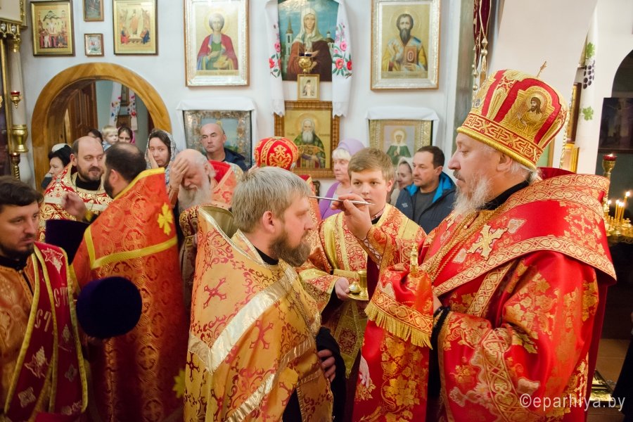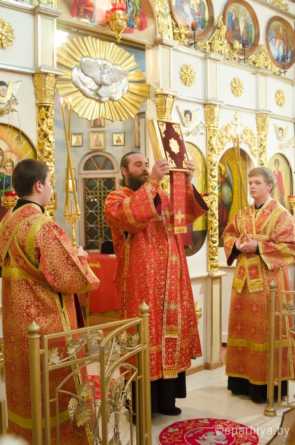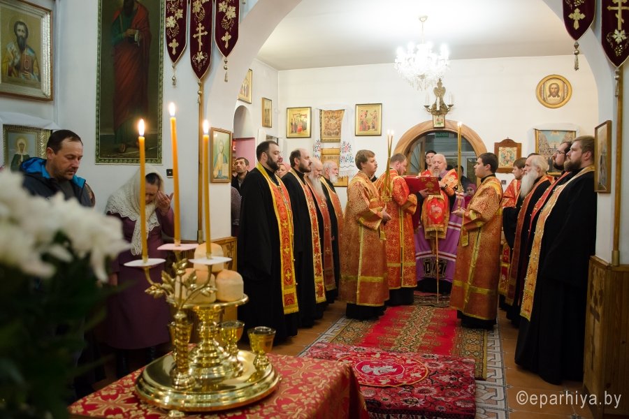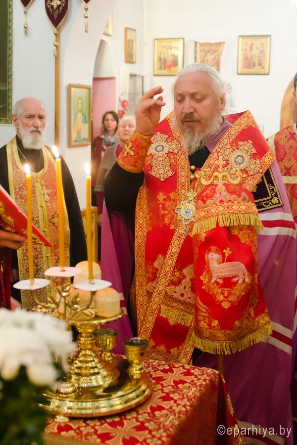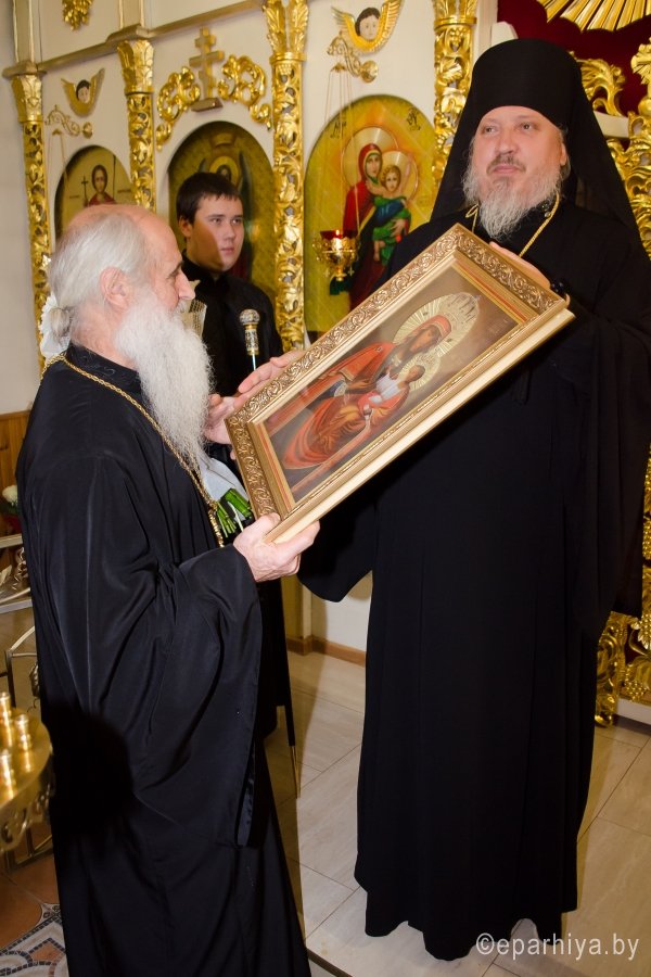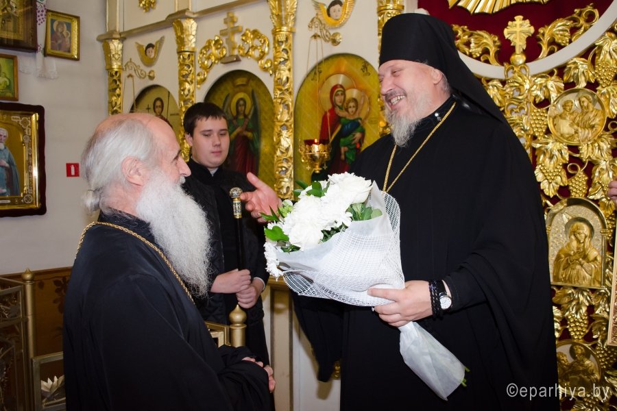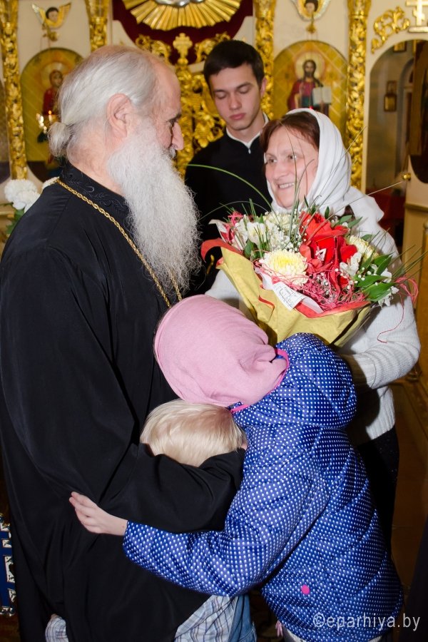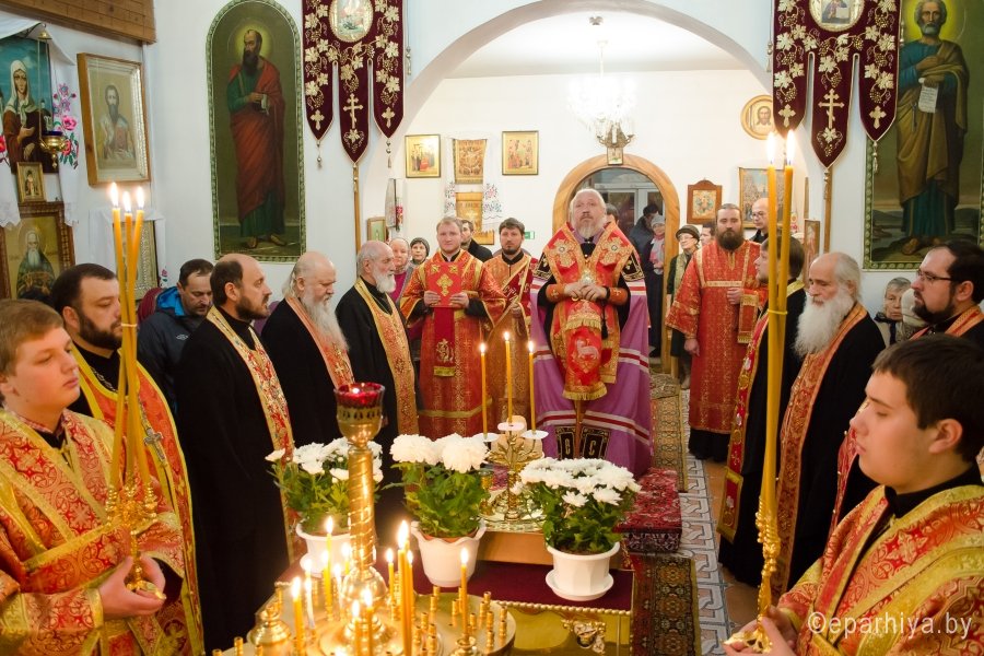 7 ноября 2016г., в канун дня памяти вмч. Дмитрия Солунского, Преосвященный Стефан возглавил вечернее богослужение в храме вмч. Георгия Победоносца г.Гомеля. Преосвященному сослужили: секретарь Гомельской епархии протоиерей Георгий Алампиев, духовник Гомельской епархии протоиерей Стефан Гладыщук, благочинный Гомельского городского округа протоиерей Игорь Ольшанов, настоятель и духовенство прихода. По окончании богослужения Владыка поздравил настоятеля прихода протоиерея Дмитрия Гончарова с наступающим Днем тезоименитства, преподнес ему в дар святой образ Пресвятой Богородицы и обратился к молящимся со словами Архипастырского назидания. |