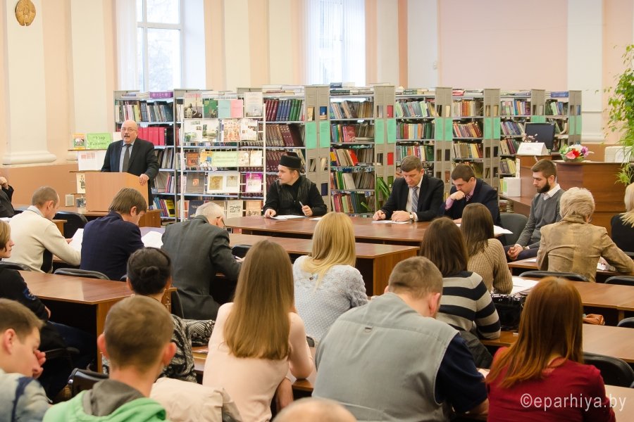 Под таким названием в ГГУ имени Ф.Скорины состоялась республиканская научно-практическая конференция, которая проходила в рамках Покровских образовательных чтений. Ее организаторами выступили наш университет, исторический факультет и Гомельская епархия Белорусской православной церкви. Открывая пленарное заседание форума, проректор по научной работе, д.т.н., профессор О.М.Демиденко подчеркнул большую значимость мероприятия в исследовании учеными, студентами, магистрантами и аспирантами университета важных и имеющих высокую научную значимость проблем, роли христианства в развитии нашего общества. Участников конференции приветствовали проректор по воспитательной работе Ю.В.Никитюк, который отметил необходимость тесного взаимодействия ГГУ и Гомельской епархии и его положительные плоды в выборе молодыми людьми правильных жизненных ориентиров. Протоиерей Вадим Кочан, созаведующий кафедрой христианской культуры, в своем выступлении также подчеркнул, что конференция станет еще одной яркой страницей сотрудничества университета и Гомельской епархии. На пленарном заседании и в трех секциях было заслушано около 40 научных докладов, в которых рассматривалась роль церкви в государственной и общественной жизни, православие в истории Гомельщины. Обсуждались вопросы взаимосвязи системы образования и христианских ценностей в формировании гармонично развитой личности. |