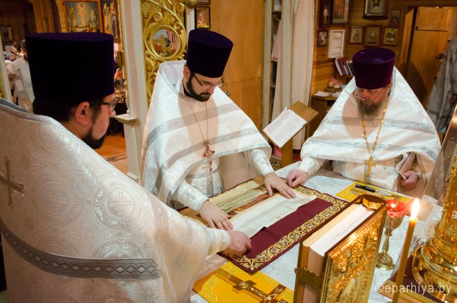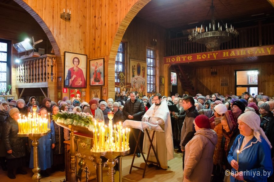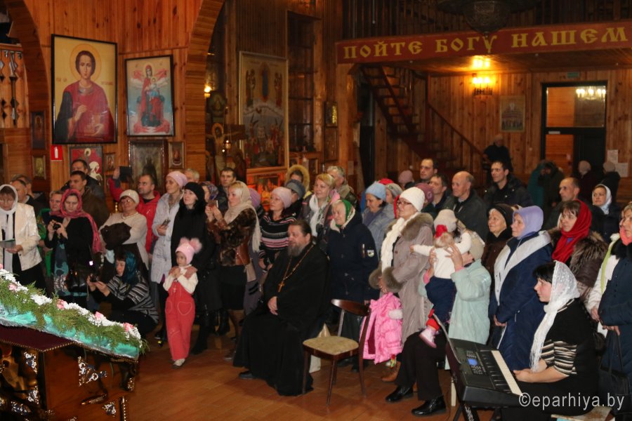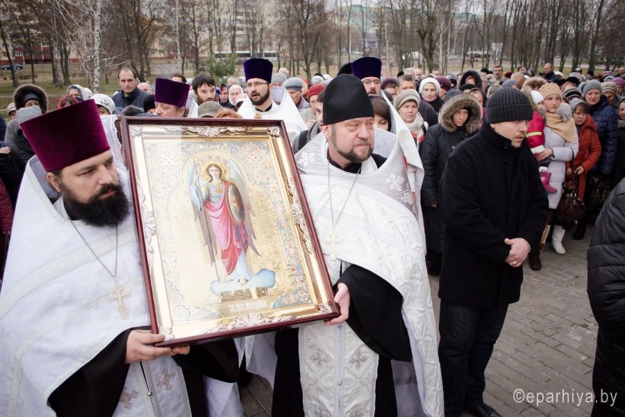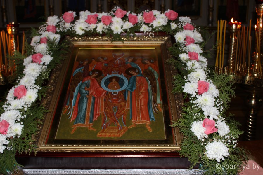 20 ноября 2016 г., в канун престольного праздника храма – Собора Архистратига Божия Михаила и прочих Небесных Сил бесплотных при большом стечении прихожан настоятель Свято-Михайловского храма протоиерей Игорь Ольшанов в сослужении духовенства храма совершили всенощное бдение. Празднование Собора Архистратига Божия Михаила и прочих Небесных Сил бесплотных установлено в начале IV века на Поместном Лаодикийском Соборе, бывшем за несколько лет до Первого Вселенского Собора. Лаодикийский Собор 35-м правилом осудил и отверг еретическое поклонение ангелам как творцам и правителям мира и утвердил православное их почитание. 21 ноября в престольный праздник настоятель храма протоиерей Игорь Ольшанов в сослужении протоиерея Александра Лопушанского, председателя Комиссии по канонизации святых Гомельской епархии и духовенства храма совершил Божественную литургию. Праздничные богослужения сопровождал церковный хор, образованный в мае 2015 года под руководством регента Марии Степанюк. С Божьей помощью и в результате плодотворного совместного труда созданный хор зазвучал в лучших традициях церковного пения и стал настоящим украшением храма святого Архангела Михаила. По окончании богослужений настоятель протоиерей Игорь Ольшанов поздравил прихожан с праздником: «Божьего благословения, здравия всем нам и пусть по молитвам Святого Архангела Михаила служение Господу нашему в храме не прекращается!». Накануне вечером собравшиеся также приняли поздравления от юных воспитанников Воскресной школы храма. |