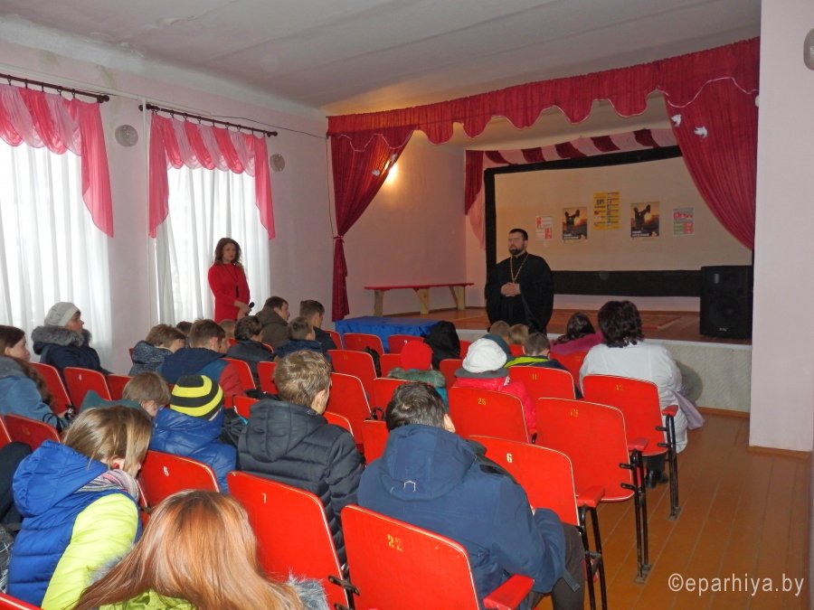 1 декабря 2016 года. в доме культуры д. Якимова Слобода Светлогорского района прошло мероприятие, посвященное Дню борьбы со СПИДом. На встречу были приглашены учащиеся 3-11 классов ГУО «Средняя школа деревни Якимова Слобода». С приветственным словом ко всем присутствующим обратилась организатор мероприятия и художественный руководитель СДК Шевкунова-Клышпач Олеся Васильевна. Заведующая фельдшерско-акушерским пунктом Клачкова Наталья Владимировна рассказала ребятам, как предостеречь себя от ВИЧ/СПИД. Была зачитана статистика заболевания СПИДом по Светлогорскому району. Клирик храма Преображения Господня г. Светлогорска иерей Виктор Шевеленко рассказал школьникам о целомудрии, о том, как важно хранить себя в духовной чистоте и воздержании. В своем слове священнослужитель подчеркнул: – В наше время, к сожалению, многие средства массовой информации и Интернет навязывают разврат, блуд, наркоманию, показывают эти грехи как норму жизни. Молодежь – это наше будущее, будущее Церкви, будущее государства. Сегодня необходимо это будущее созидать на правильном, здравом отношении к жизни, православных традициях нашего народа. |
