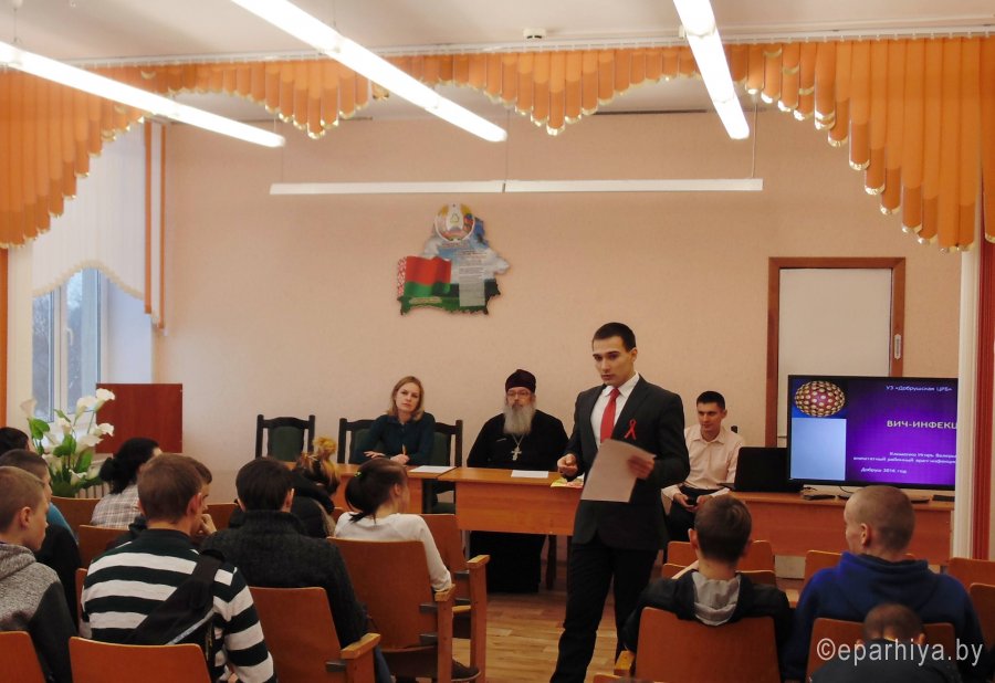 1 декабря отмечается Всемирный день борьбы со СПИДом, который демонстрирует международную солидарность в противодействии эпидемии ВИЧ-инфекции. На базе УО «Добрушский государственный профессиональный политехнический лицей» в этот день прошел круглый стол с учащимися учреждения, организованный УЗ Добрушская центральная районная больница. Фельдшер-валеолог Гуцева М.М., врач-эпидемиолог Горбачев В.В., врач-инфекционист Клименко И.В. рассказали молодым людям о глобальности проблемы и об эпидемиологической ситуации по ВИЧ-инфекции в Гомельской области, клинической картине и путях заражения, об оказании лечебно-диагностической помощи в районе. Выступление медицинских специалистов подытожил протоиерей Евгений Шупеня, ответственный за религиозное образование и катехизацию в благочинии. Он высказал христианский взгляд на эту проблему. Рассказал собравшимся о том, как болезнь и смерть вошли в мир после грехопадения, как сокращалась продолжительность жизни людей по мере преумножения греха. Привел поучительные примеры того, как болезнь смиряла и исправляла самых неисправимых греховодников. «Бог дает нам болезни, чтобы мы остановились, перестали грешить, — говорил священнослужитель, — а ведь именно это и есть цель Божья, чтобы мы перестали грешить и вошли в жизнь вечную.» По благословению епископа Гомельского и Жлобинского Стефана 1 декабря 2016 года в храмах епархии был отслужен молебен о здравии людей, живущих с диагнозом ВИЧ/СПИД. |