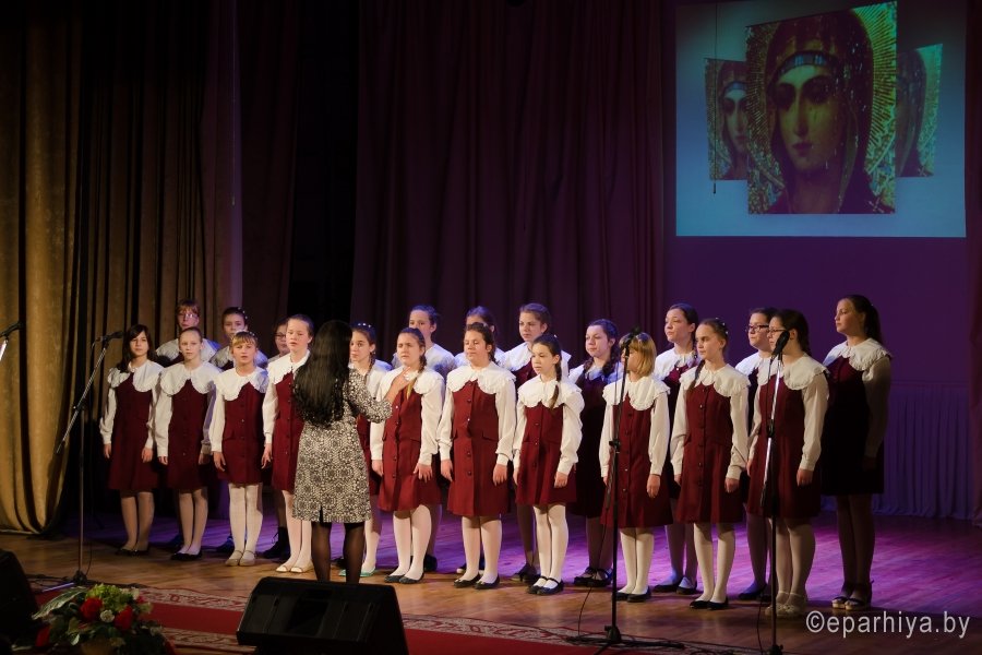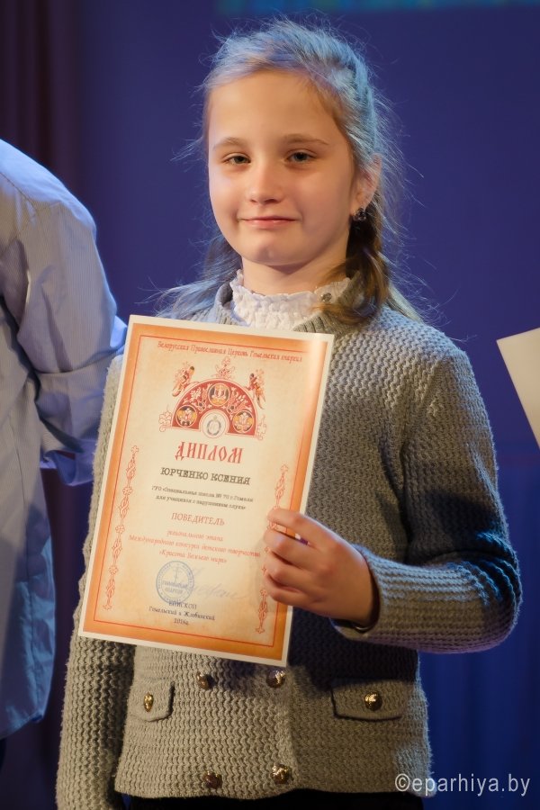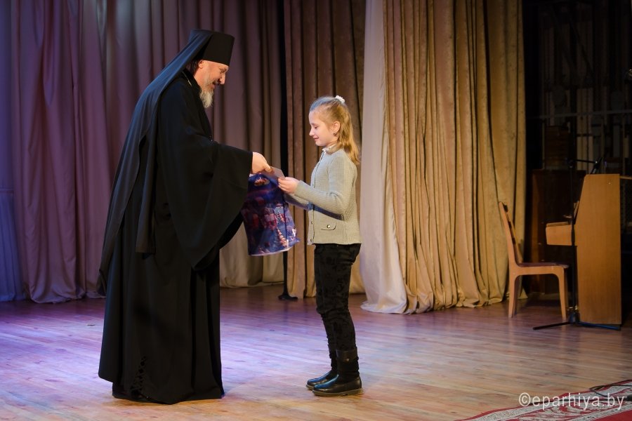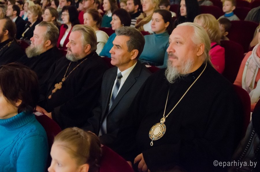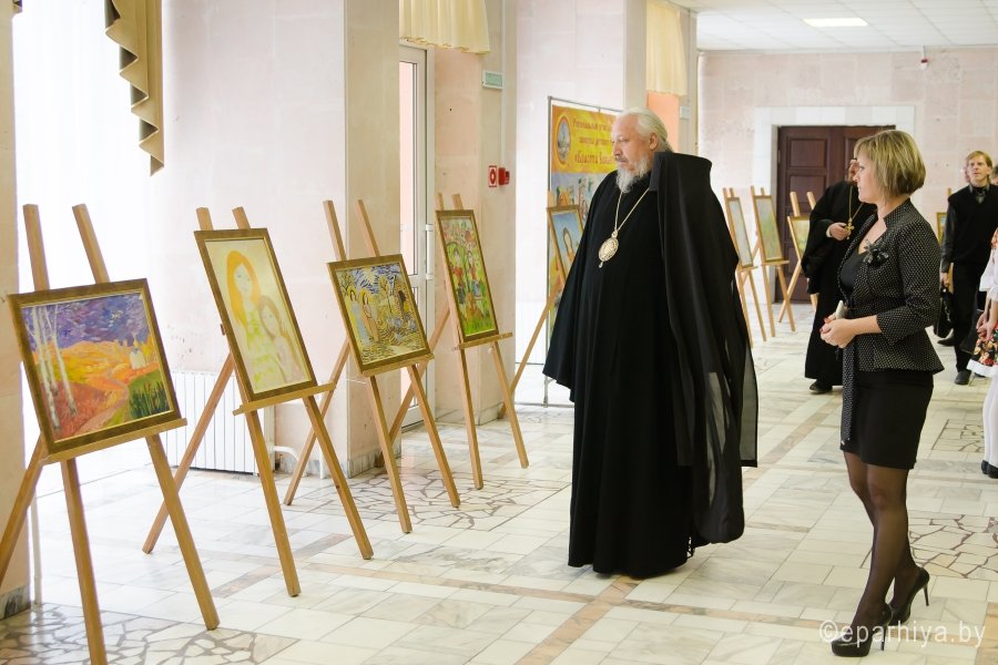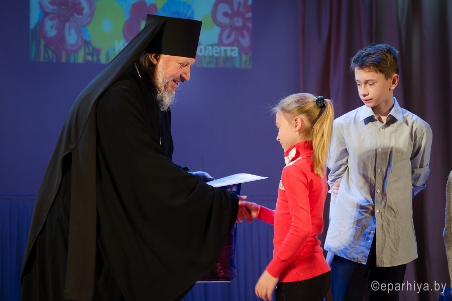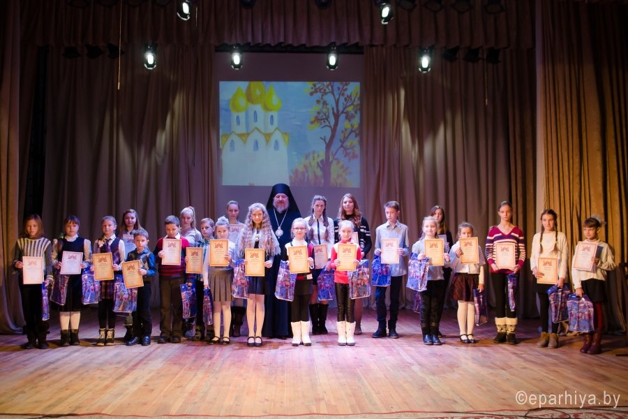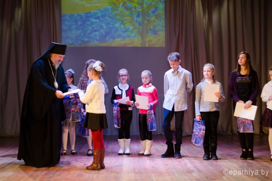 В концертном зале Гомельского государственного областного Дворца творчества детей и молодёжи 4 декабря состоялась торжественная церемония награждения победителей региональный этапа Международного конкурса детского творчества «Красота Божьего мира», который проходил в Гомельской епархии с 14 сентября по 1 ноября. Конкурс направлен на духовное просвещение, нравственное и патриотическое воспитание подрастающего поколения, приобщение молодежи к православной культуре и мировой культуре, выявление и раскрытие молодых талантов, создание среды для творческого общения детей и юношества. В нынешнем году основная тематика Конкурса была следующей: Моя Москва - Моя Столица; Рождество Христово; Библейские сюжеты; Мир духовный и мир земной; Христос и Церковь; Любимый храм; Красота родной природы; Мой дом, моя деревня, мой город; Моя семья, мои друзья. На рассмотрение жюри было представлено около 500 детских работ, подготовленных воспитанниками и обучающимися учреждений дошкольного, общего среднего образования, учреждений дополнительного образования детей и молодёжи, воспитанниками воскресных школ Гомельской епархии. В нынешнем году для участия во втором этапе конкурса, который проходит в г.Москва, в рамках XXV Международных Рождественских образовательных чтений, жюри отобрало 11 детских работ. Вниманию посетителей в мраморном холле Дворца была развёрнута выставка детских работ, участников конкурса, а в зрительном зале зрителям была представлена концертная программа, почётными гостями которой стали Епископ Гомельский и Жлобинский Стефан, С.И.Порошин, начальник управления образования Гомельского облисполкома; начальники отделов образования, спорта и туризма райисполкомов, расположенных на канонической территории Гомельской епархии, благочинные и координаторы благочиний. Своим творчеством, прославляющим нашего Творца и Создателя, со сцены делились образцовый хор «Вдохновение» Брилевской средней школы, образцовый ансамбль скрипачей «Визави» средней школы № 67 г.Гомеля, многочисленные вокальные и хореографические коллективы Гомельского государственного областного Дворца творчества детей и молодежи. Никого не оставил равнодушным задорный и яркий русский народный танец «Барыня» в исполнении хореографического ансамбля Детской школы искусств № 5 г.Гомеля. Воспитанники воскресной школы прихода храма иконы Божией Матери «Скоропослушница» в г.Гомеле прочитали небольшие стихотворения о красоте Божьего мира. В который раз порадовал своим творчеством и церковный хор прихода храма Рождества Пресвятой Богородицы агрогородка Урицкое. Завершилась концертная программа торжественной церемонией награждения победителей Конкурса. |