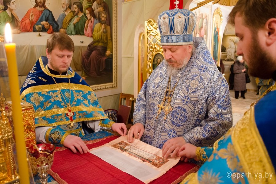 5 декабря 2016г. Преосвященнейший Стефан возглавил Божественную литургию в криптовом храме Свято-Петро-Павловского кафедрального собора г.Гомеля. Преосвященному сослужили: секретарь Гомельской епархии протоиерей Георгий Алампиев и духовенство собора. По заамвонной молитве Владыка вознёс молитву о мире в Украине. По окончании богослужения епископ Стефан поздравил причастников с принятием Святых Христовых Таин и обратился к молящимся со словами Архипастырского назидания. |
