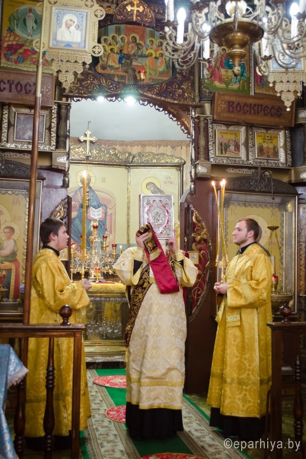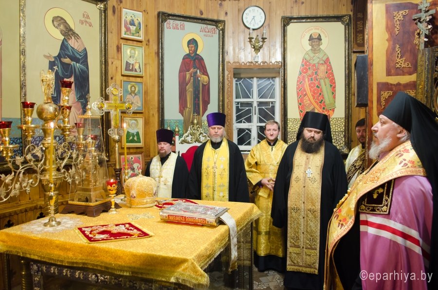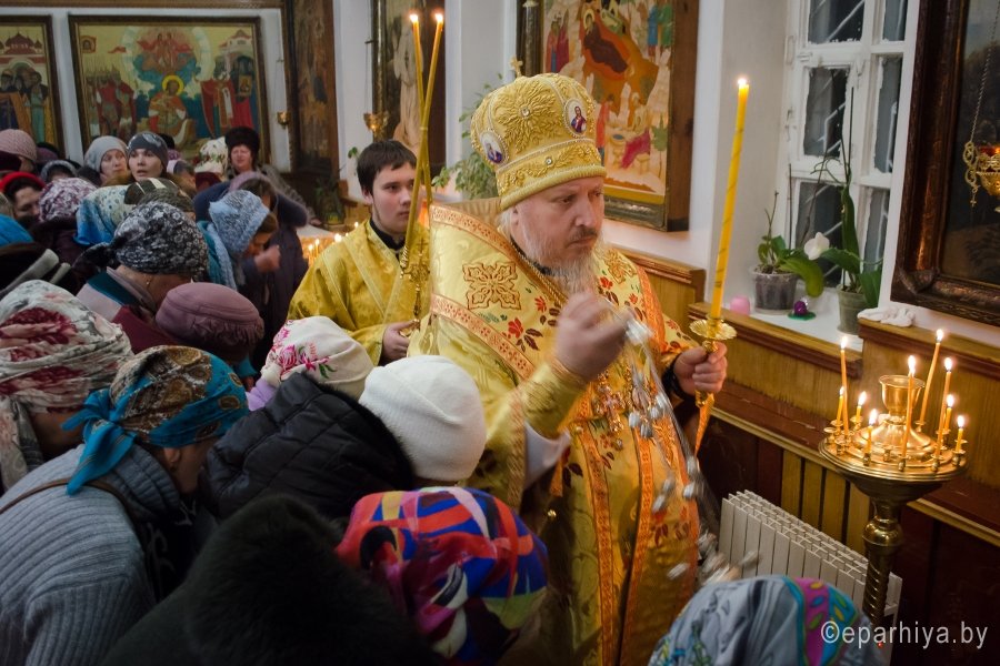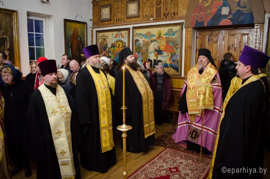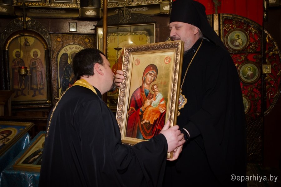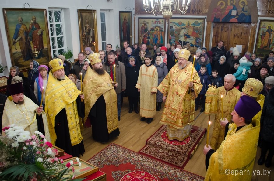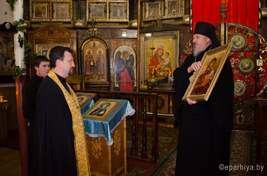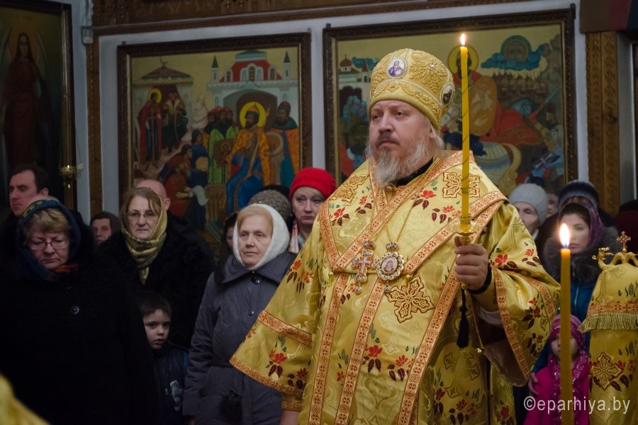 5 декабря 2016г., в канун дня памяти св. блг. кн. Александра Невского, преосвященный Стефан совершил всенощное бдение в одноименном храме г.Рогачева. Преосвященному сослужили: секретарь Гомельской епархии протоиерей Георгий Алампиев, благочинный монастырей Гомелькой епархии архимандрит Амвросий (Шевцов), благочинный Рогачевского округа протоиерей Алексей Смотрицкий и духовенство прихода. По окончании богослужения Преосвященный Стефан поздравил всех с наступающим праздником и преподнес в дар храму Святой Образ. В память об этом дне Владыка Стефан раздал молящимся иконки. |