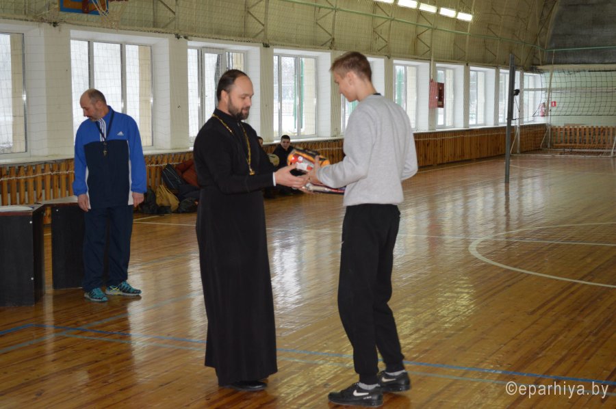 В Речице прошел волейбольный турнир между командами учреждений образования города на призы православного молодежного братства в честь апостола Фомы. Команды 9 средних школ города, команда районной гимназии и команда районного лицея сражались за право владеть переходящим кубком. Две волейбольные площадки стадиона "Центральный", на которых проходил турнир, кипели нешуточными страстями. Ни одна из команд не желала уступать победу без борьбы. Но в любой борьбе все равно есть сильнейший. По результатам финальной игры первое место заняла команда СШ № 6, второе - команда районной гимназии.В борьбе за третье место победила команда школы № 5. Ну, а почетное четвертое место заняла команда школы № 4. Протоиерей Ростислав Миронович, вручая призы победителям, поблагодарил всех за прекрасный спортивный праздник и пожелал ребятам здоровья и крепости духа, так необходимого в любой борьбе. |