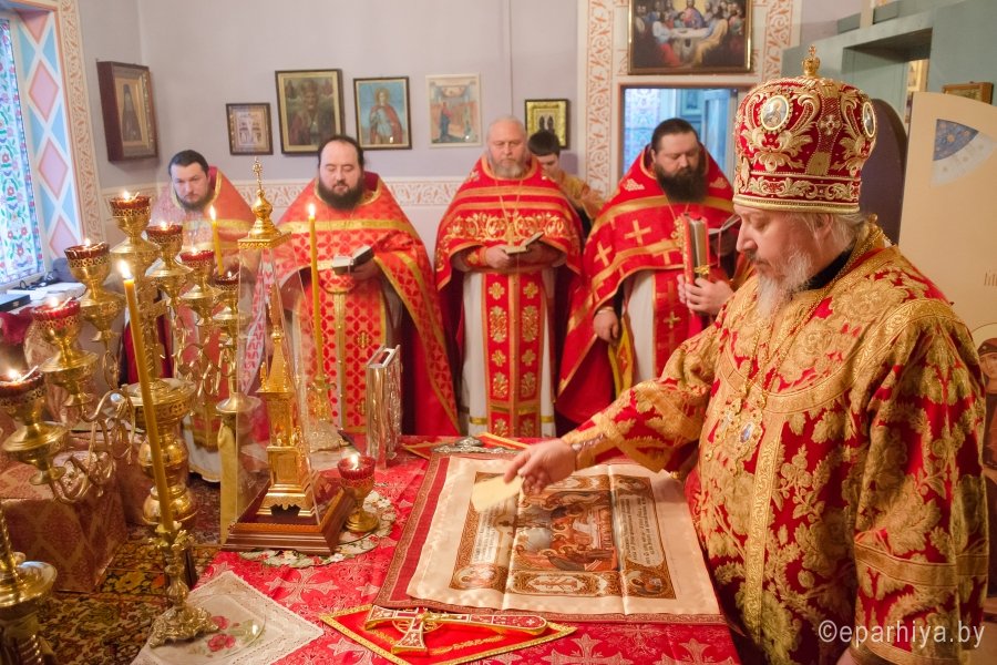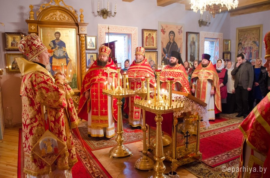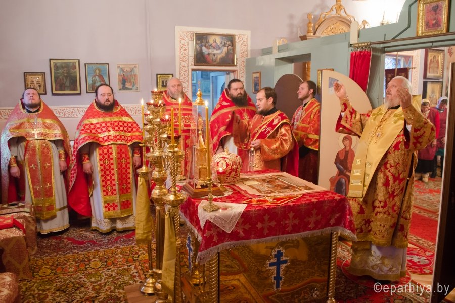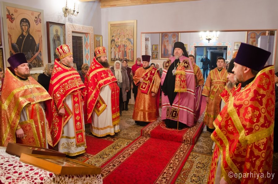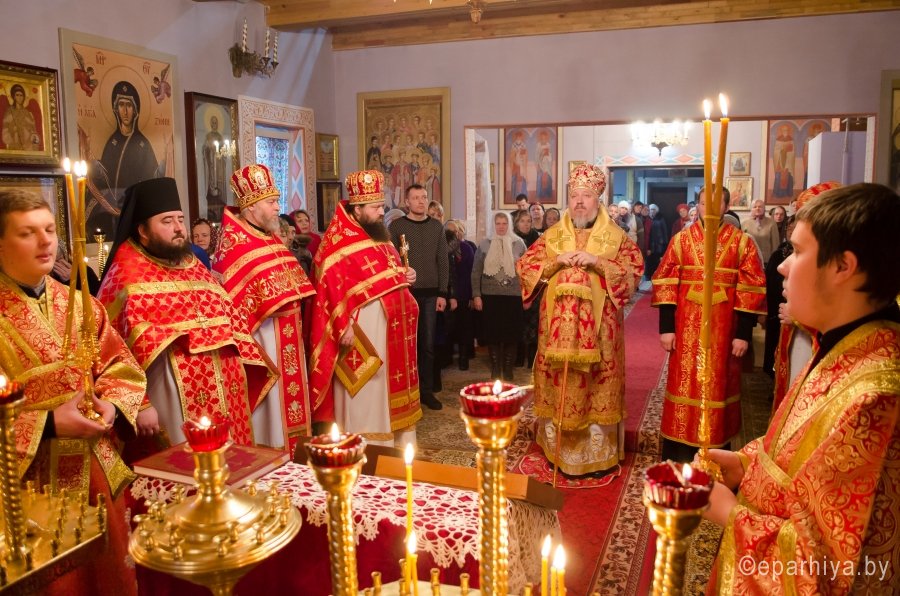 10 декабря 2016г., в день памяти священномученика Кронида, Преосвященнейший Стефан возглавил Божественную литургию в храме св.мч Иоанна Воина г.Жлобина. Преосвященному сослужили: благочинный монастырей Гомельской епархии архимандрит Амвросий (Шевцов), благочинный Жлобинского округа протоиерей Василий Пилипенко, благочинный Рогачевского округа протоиерей Алексей Смотрицкий духовенство благочиния и епархии. По заамвонной молитве Владыка вознес молитву о мире в Украине. По окончании богослужения Владыка поздравил прихожан с праздником, а настоятеля прихода иеромонаха Кронида (Печевистого) с днем тезоименитства. Обращаясь ко всем присутствующим в Архипастырском назидании поздравил причастников с принятием Святых Христовых Таин. |