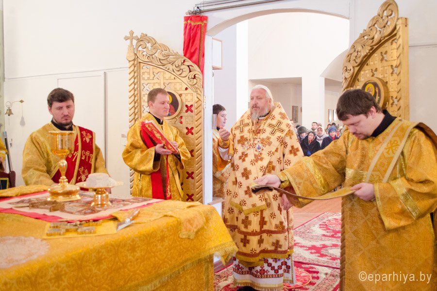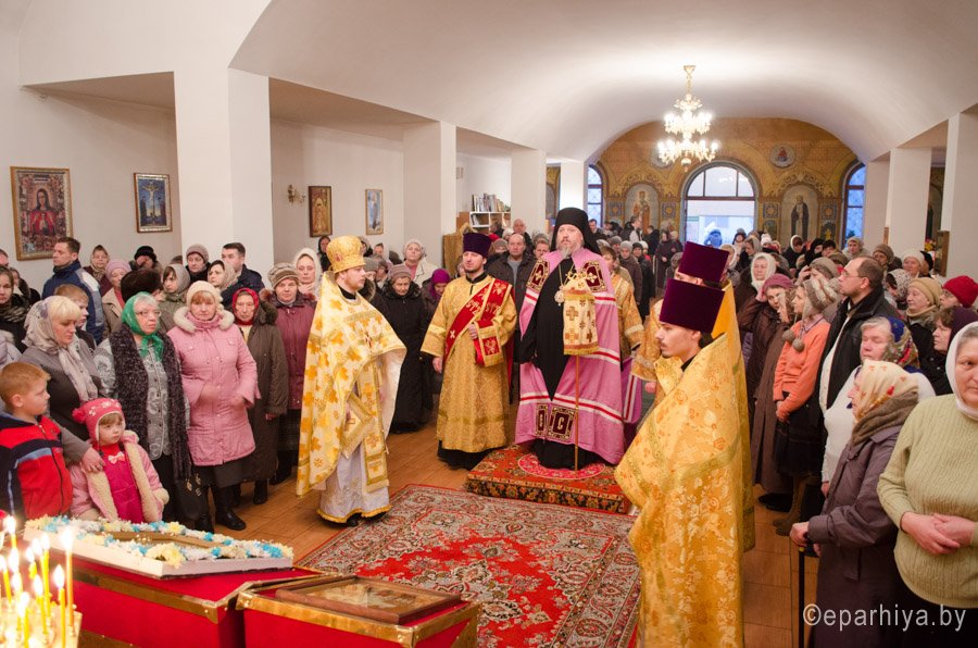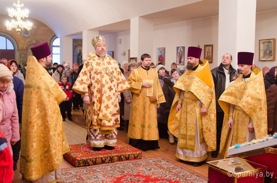 8 февраля 2015г., в день празднования собора новомученников и исповедников Церкви Русской, Преосвященнейший Стефан возглавил Божественную литургию в храме праведного Иоанна Кормянского г.Гомеля. Преосвященнейшему сослужили: секретарь Гомельской епархии протоиерей Георгий Алампиев и духовенство епархии. По окончании богослужения Владыка поздравил всех присутствующих с праздником и обратился со словами проповеди. |