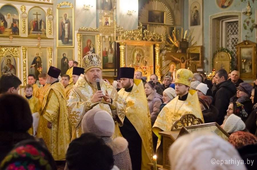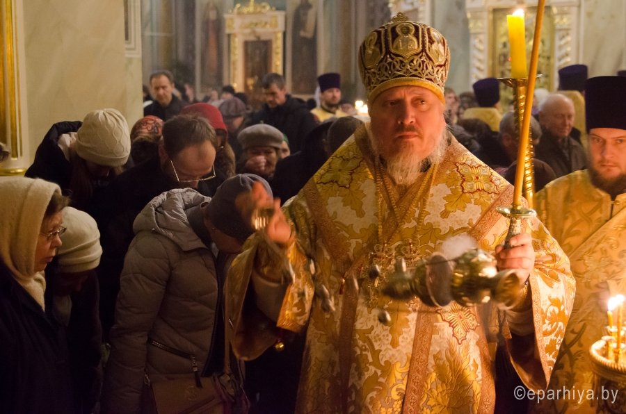 18 декабря 2016г., в канун Недели 26-й по Пятидесятнице, дня памяти прп. Саввы Освященного, Преосвященный Стефан совершил всенощное бдение в Свято-петро-Павловском кафедральном соборе г. Гомеля. Преосвященному сослужили: секретарь Гомельской епархии протоиерей Георгий Алампиев и духовенство собора. По окончании богослужения Владыка обратился к молящимся со словами Архипастырского назидания. |