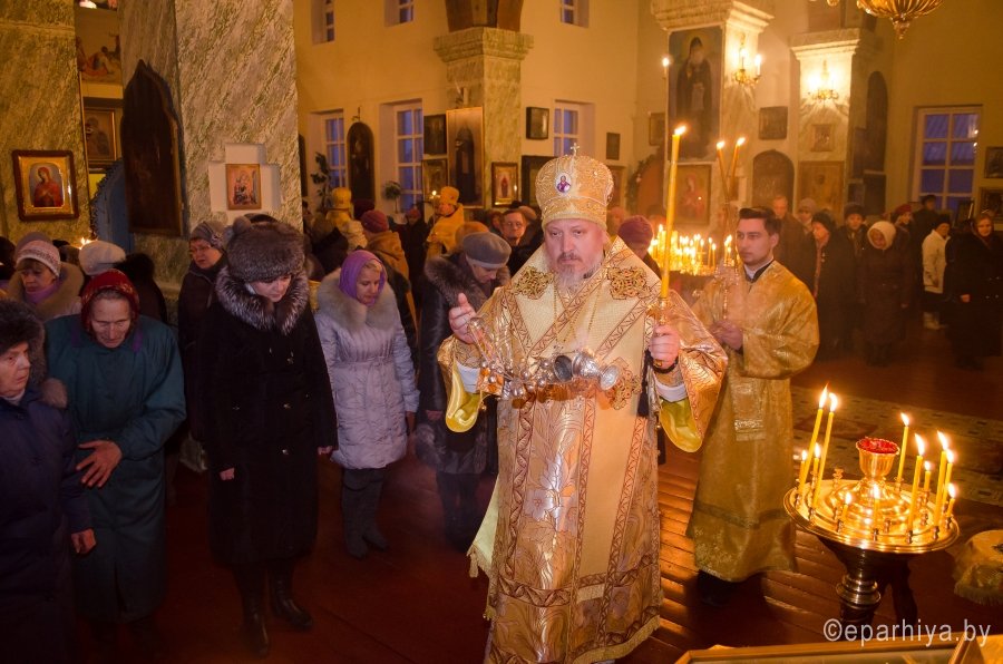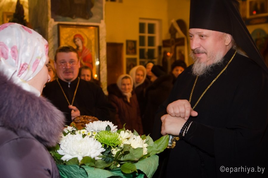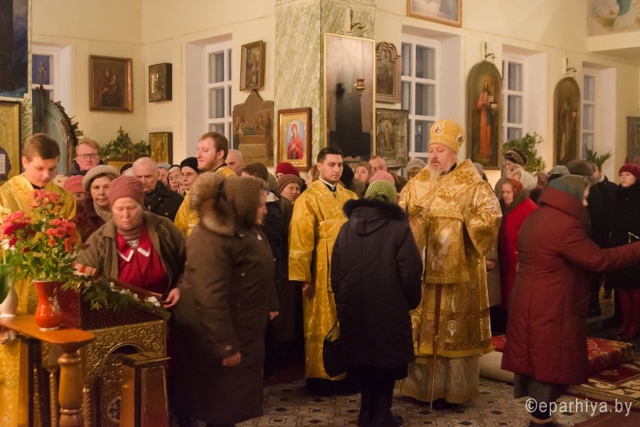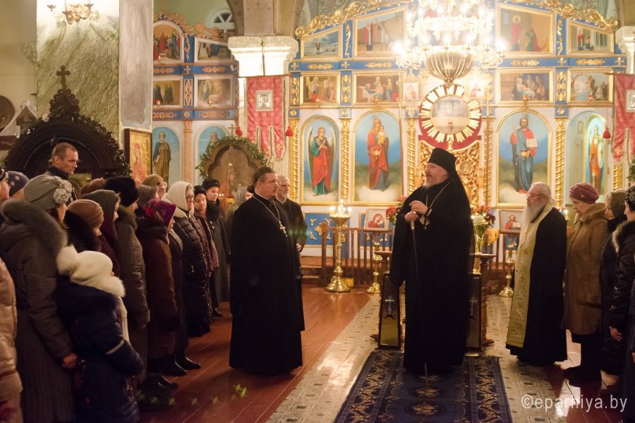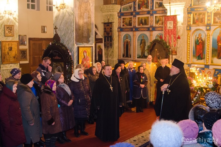 18 декабря 2016г., в канун дня памяти святителя Николая Чудотворца, Преосвященный Стефан совершил всенощное бдение в одноименном храме г.Добруша. Преосвященному сослужили: секретарь Гомельской епархии протоиерей Георгий Алампиев, благочинный Добрушского округа протоиерей Алексей Пилипенко и духовенство прихода. По окончании богослужения Владыка поздравил присутствующих с наступающим праздником и обратился со словами Архипастырского назидания. |