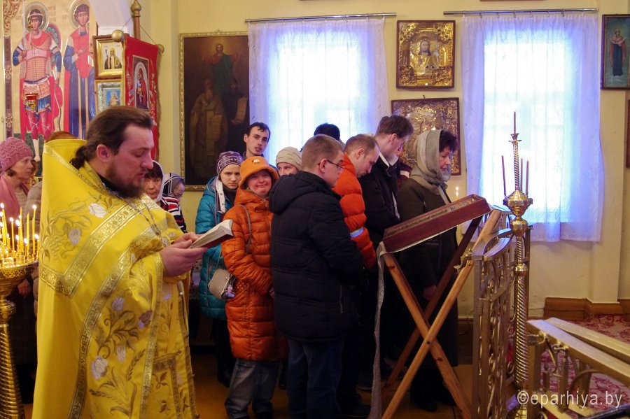 ЖЛОБИН. Воспитанники отделения дневного пребывания инвалидов молились за Божественной Литургией