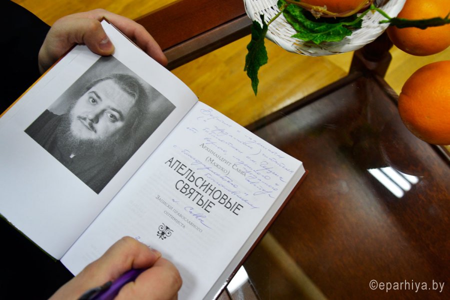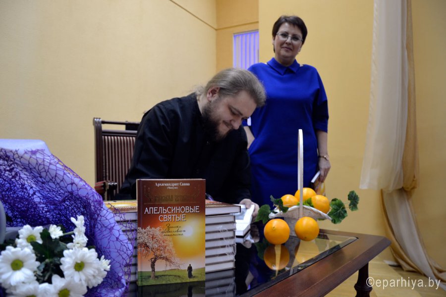 21 декабря в Гомельской центральной городской библиотеке им. А. И. Герцена состоялась презентация книги архимандрита Саввы (Мажуко) "Апельсиновые святые. Записки православного оптимиста", выпущенной в 2016 году в серии «Православный бестселлер» издательства «РИПОЛ классик». Татьяна Савельевна Власова, директор библиотеки представила автора, хорошо известного как гомельской публике, так и далеко за пределами не только областного центра, но и Беларуси. Отец Савва ответил на вопросы Татьяны Николаевны Усольцевой, кандидата филологических наук. И публика узнала, что батюшка - не писатель и не читатель, а пишущий читатель, и что он совсем не оптимист, а скорее реалист, что он популяризатор духовного наследия о. Сергия Булкакова, которого хорошо знают и издают за рубежом, а на родине - нет. Что о. Савва очень бережно относится к своим читателям и в планах - новые интересные проекты с российскими издательствами. После душевного разговора каждый желающий получил автограф о. Саввы, а "Музей автографа" библиотеки пополнился новым экспонатом. О. Савва подписал одну из книг, преподнесенных в дар библиотечной системе. Надпись гласит: "Верным и надежным (и преданным) читателям библиотеки им. Герцена от верного, надежного и преданного автора с благодарностью и благословением. А. Савва". |