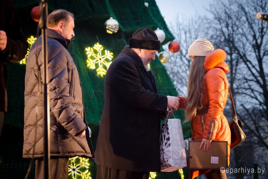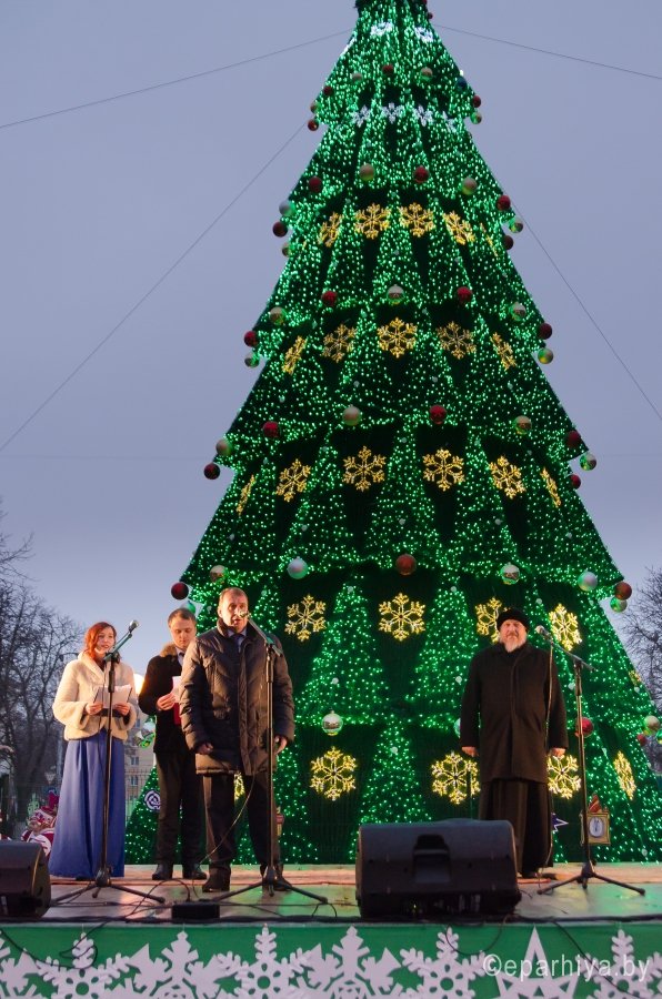 23 декабря 2916г., Преосвященный Стефан совместно с Главой Администрации Железнодорожного района г. Гомеля Виталием Юрьевичем Уткиным приняли участие в новогоднем районном празднике "Однажды под Новый Год...", который состоялся на пл. Победы г. Гомеля. |