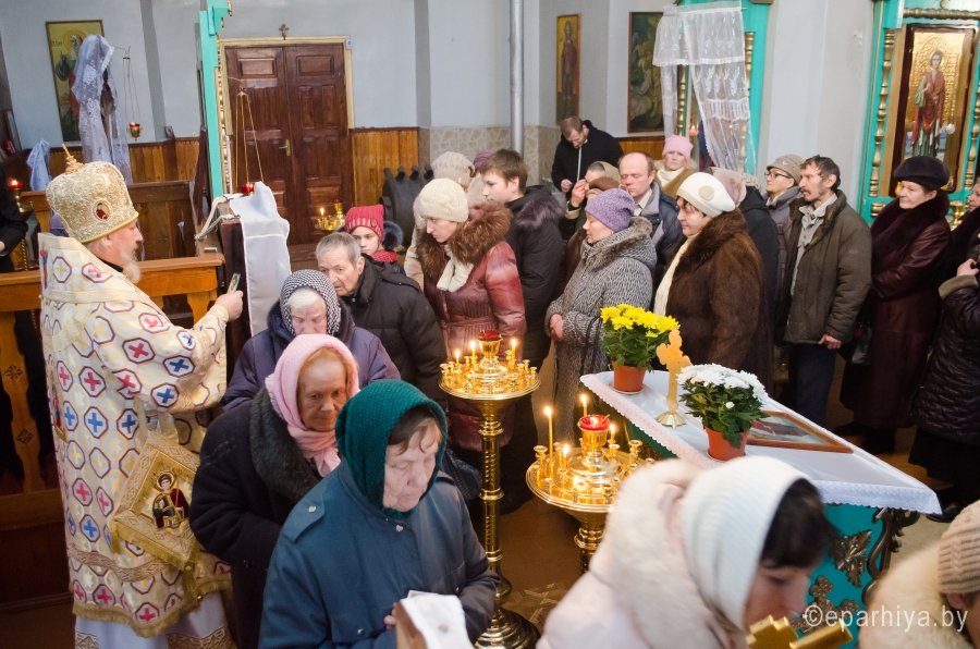24 декабря 2016г., в день памяти прп. Даниила Столпника, Преосвященный Стефан совершил Божественную литургию в храме Покрова Пресвятой Богородицы г.п. Довск. Преосвященному сослужили: благочинный монастырей Гомельской епархии архимандрит Амвросий (Шевцов), благочинный Рогачевского округа протоиерей Алексей Смотрицкий и духовенство храма. По окончании богослужения Владыка обратился к молящимся со словами Архипастырского назидания. |