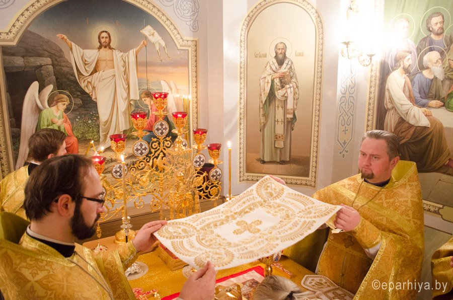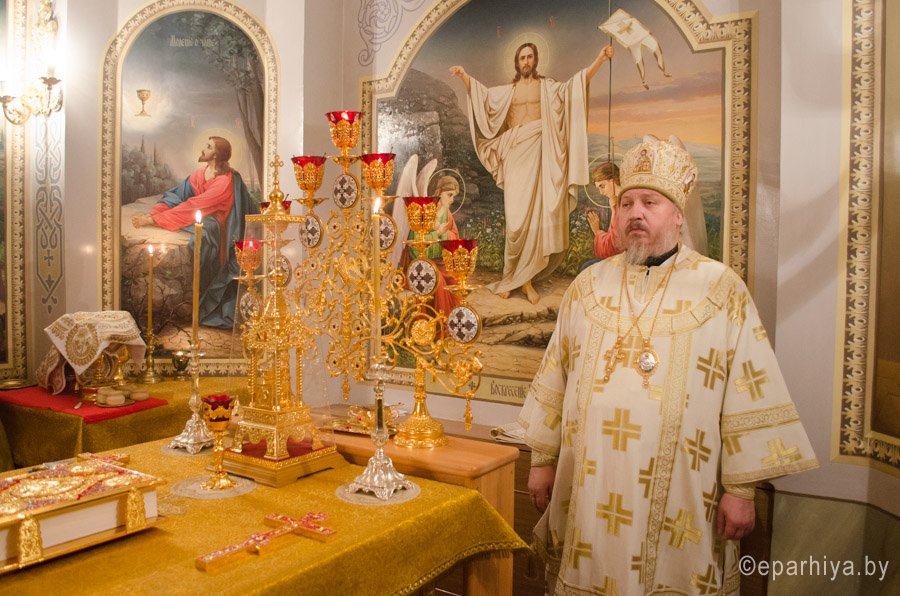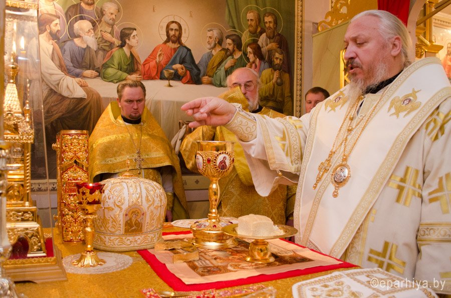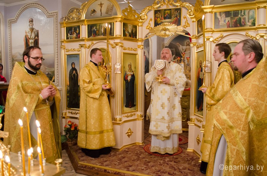 9 февраля 2015г., в день памяти святителя Иоанна Златоуста, Преосвященнейший Стефан в сослужении духовенства собора возглавил Божественную литургию в кафедральном соборе первоверховных апостолов Петра и Павла г.Гомеля. По окончании богослужения Преосвященный поздравил всех молящихся с праздником. |