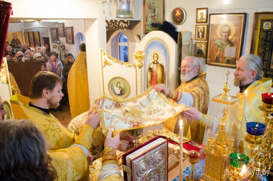 25 декабря 2016г., в день памяти свт. Спиридона Тримифунтского, Преосвященнейший Стефан совершил Божественную литургию с сурдопереводом для людей с нарушением слуха в храме иконы Божией Матери "Скоропослушница" г. Гомеля. Преосвященному сослужили: секретарь Гомельской епархии протоиерей Георгий Алампиев, благочинный Гомельского городского округа протоиерей Игорь Ольшанов, настоятель и духовенство прихода. Божественную литургию на язык жестов переводил клирик прихода иконы Божией Матери "Скоропослушница" иерей Александр Пранкевич. По окончании богослужения Владыка поздравил причастников с принятием Святых Христовых Таин и преподал всем Архипастырское благословение. |