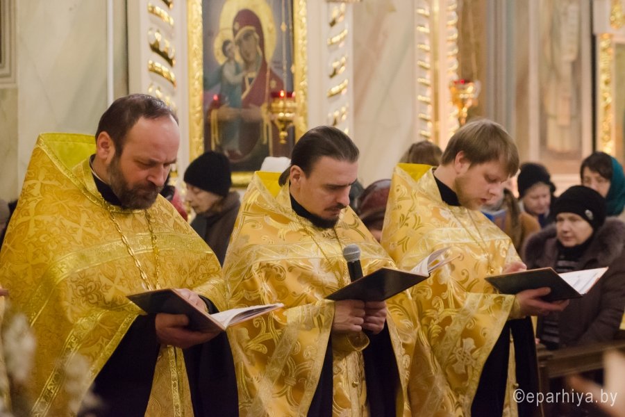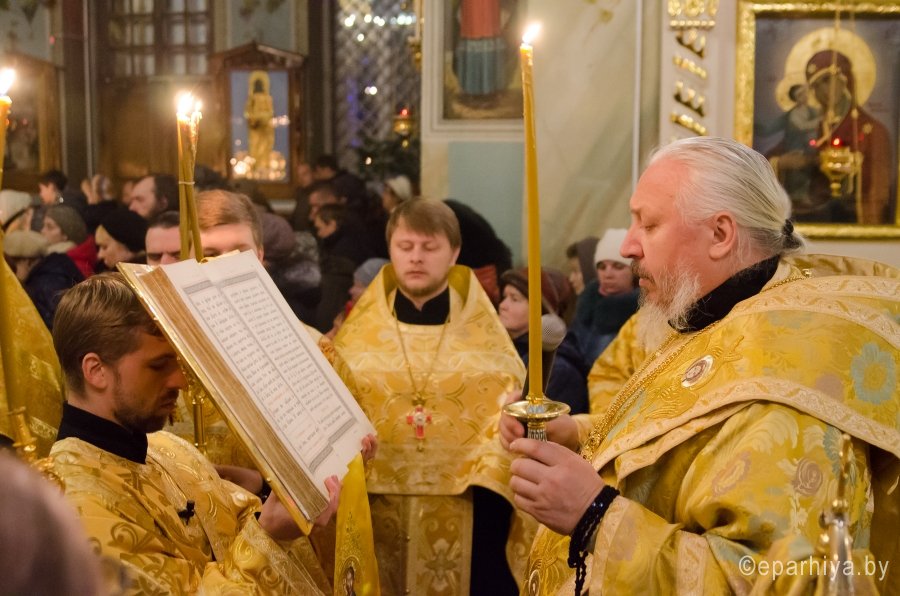 25 декабря 2016г. в Свято-Петро-Павловском кафедральном соборе г. Гомеля, состоялось вечернее богослужение с чтением акафиста нараспев. Богослужение возглавил Преосвященнейший Стефан, епископ Гомельский и Жлобинский, в сослужении секретаря Гомельской епархии протоиерея Георгия Алампиева и духовенства собора. |