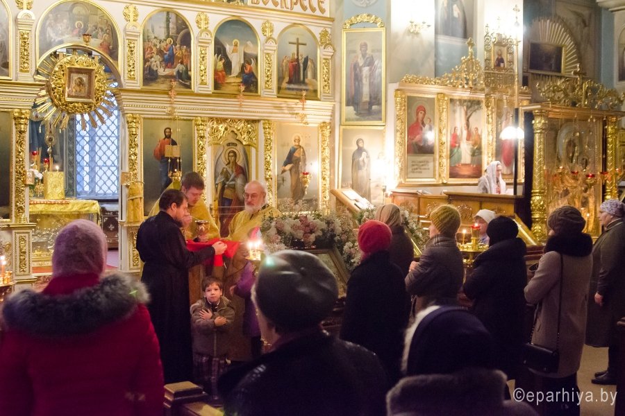 27 декабря 2016г. Преосвященный Стефан в сослужении духовенства собора возглавил Божественную литургию в Свято-Петро-Павловском кафедральном соборе г. Гомеля. По окончании богослужения Владыка поздравил причастников с принятием Святых Христовых Таин и обратился к молящимся со словами архипастырского назидания. |