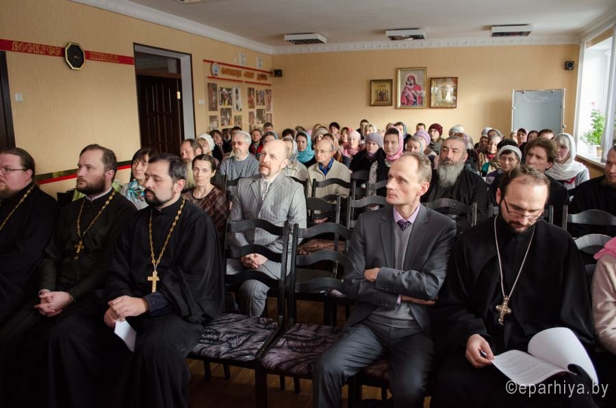 8 февраля 2015 года, по благословению Преосвященнейшего Стефана, епископа Гомельского и Жлобинского, прошли мероприятия, посвящённые актовому дню Епархиальных библейско-богословских курсов, приуроченные к празднованию дня памяти небесного покровителя курсов священномученика Митрофана (Краснопольского), архиепископа Астраханского. Имя священномученика Митрофана тесно связано с историей города Гомеля. 25 января 1907 года архимандрит Митрофан принимает новое посвящение, становиться первым Гомельским епископом, викарием Могилёвской епархии, инициатором и вдохновителем первых в городе Гомеле миссионерско-просветительских курсов. Празднование актового дня открылось молебном священномученику Митрофану. Затем состоялась конференция, посвящённая памяти новомученников и исповедников, в которой приняли участие преподаватели, курсанты и приглашённые гости. С докладами выступили: ректор Епархиальных Библейско-богословских курсов протоиерей Вадим Кочан, председатель комиссии по канонизации Гомельской епархии протоиерей Александр Лопушанский, преподаватель Епархиальных Библейско-богословских курсов И.АГрищенко, слушательница 3 курса Инна Мастепанова, научный сотрудник Ветковского музея старообрядчества и белорусских традиций им.Ф.Г.Шклярова Ольга Афанасьева, член Преображенского братства Марина Анисимова. В ходе конференции состоялась дискуссия о значении подвига новомучеников и исповедников в контексте реалий современной церковной жизни. Модератором дискуссии выступил Андрей Скидан, научный сотрудник Ветковского музея старообрядчества и белорусских традиций им.Ф.Г.Шклярова, член Преображенского братства. Завершилась конференция демонстрацией документально-публицистического фильма, посвящённого памяти исповедникам Мозырской земли. |