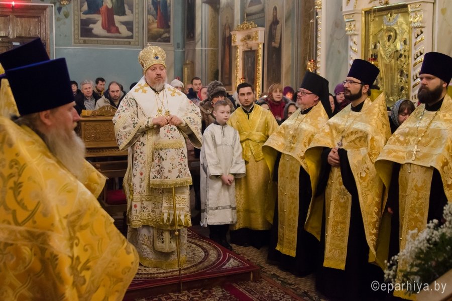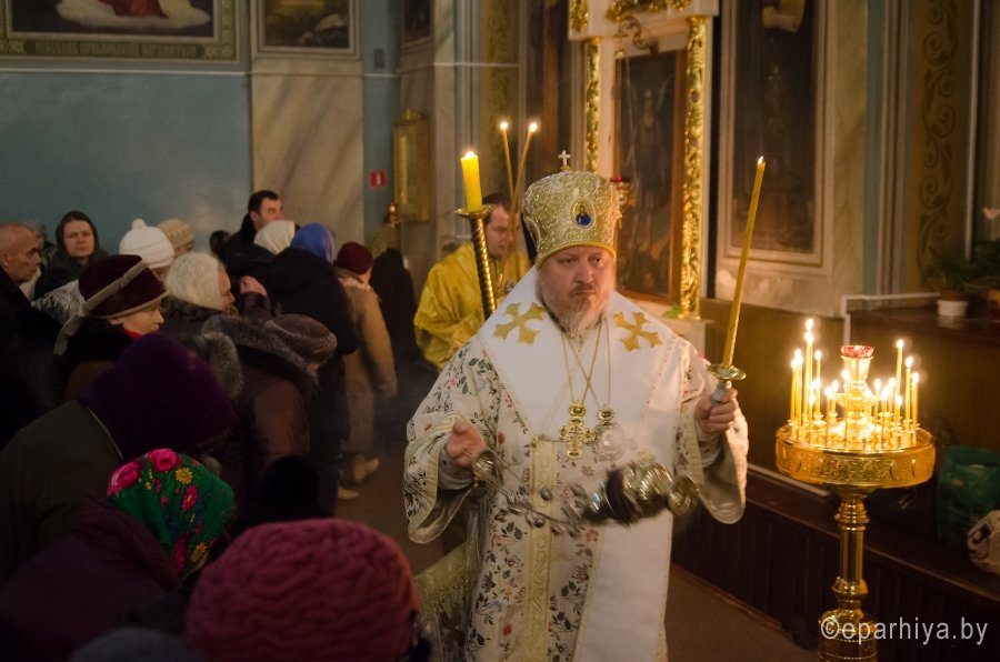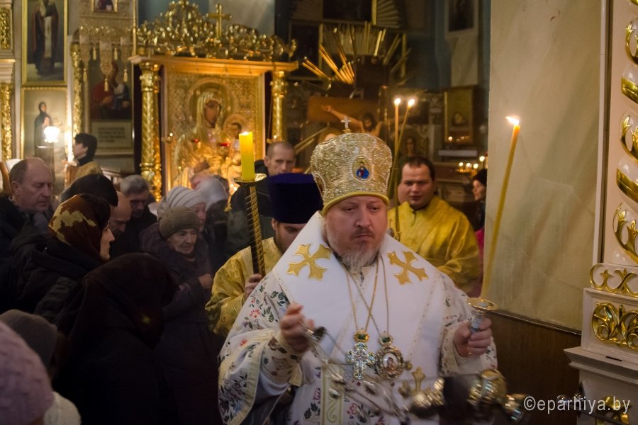 31 декабря 2016г., в канун Недели 28-й по Пятидесятнице, Преосвященный Стефан совершил всенощное бдение в Свято-Петро-Павловском кафедральном соборе г. Гомеля. Преосвященному сослужили: секретарь Гомельской епархии протоиерей Георгий Алампиев и духовенство собора. По окончании богослужения Владыка обратился к молящимся со словами Архипастырского назидания. |