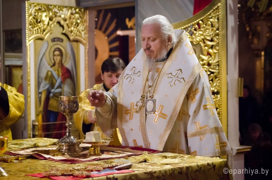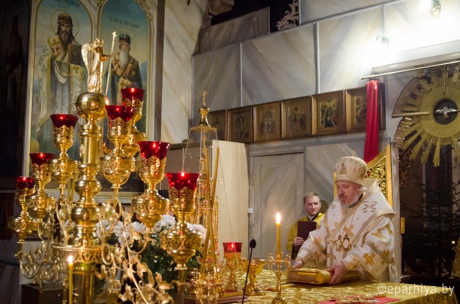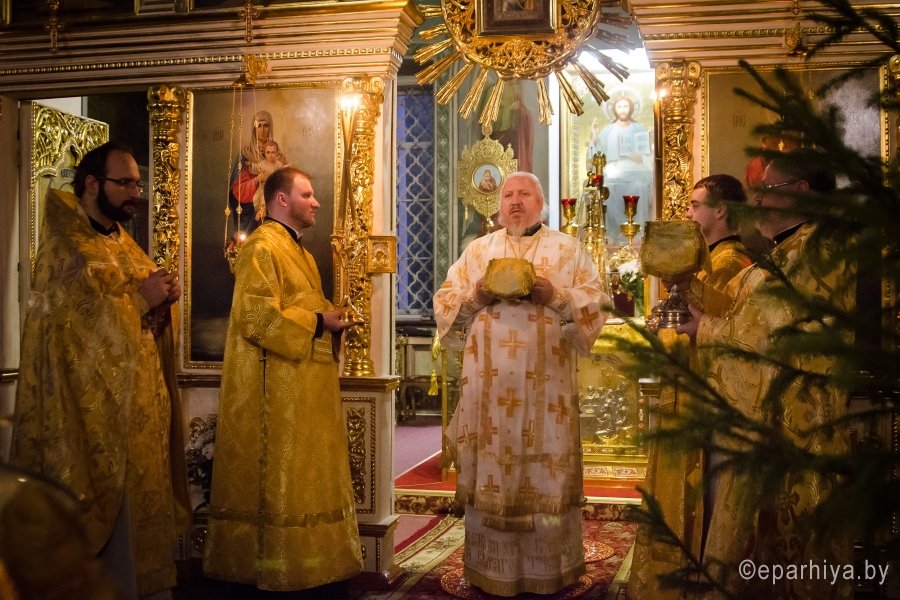 2 января 2017г., в день памяти прав. Иоанна Кронштадского, Преосвященный Стефан в сослужении духовенства собора совершил Божественную литургию в Свято-Петро-Павловском кафедральном соборе г. Гомеля. По окончании богослужения Владыка поздравил причастников с принятием Святых Христовых Таин и обратился к молящимся со словами Архипастырского назидания. |