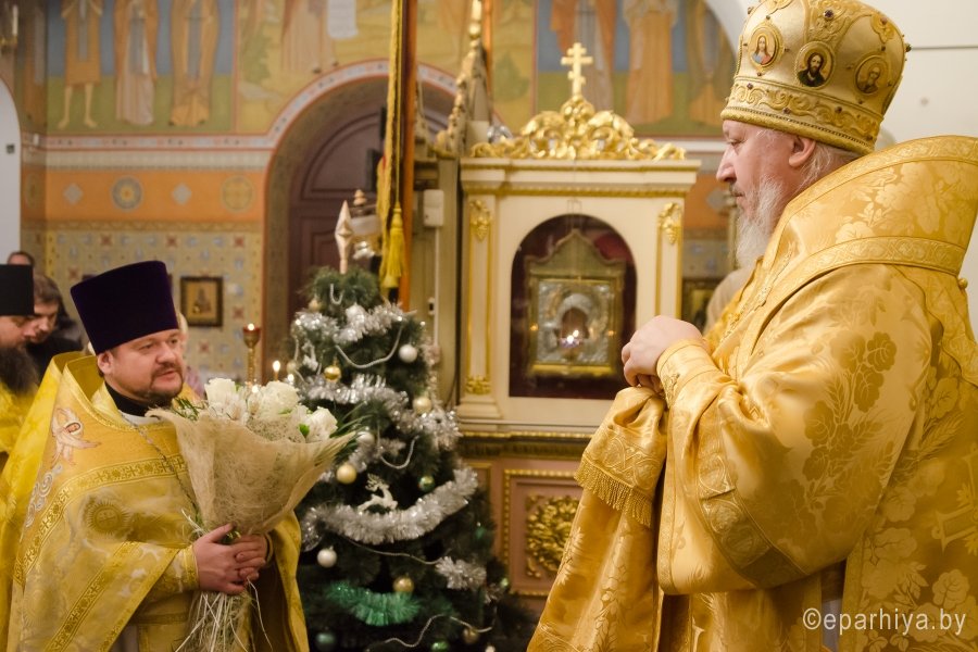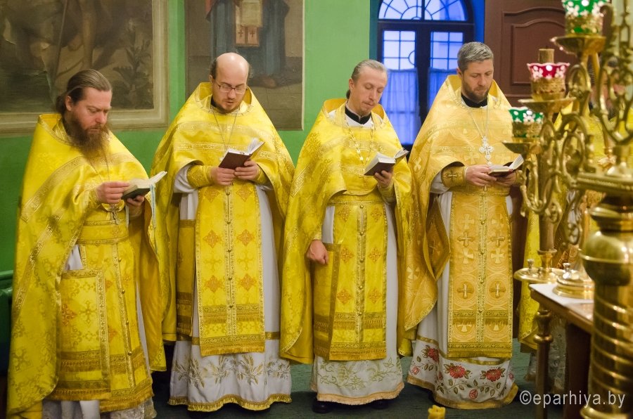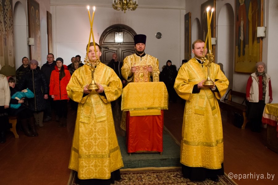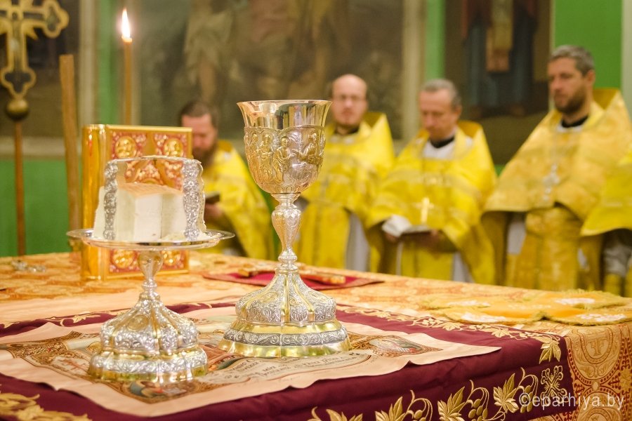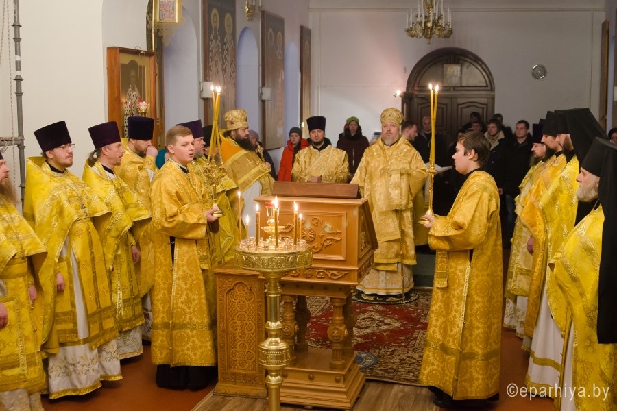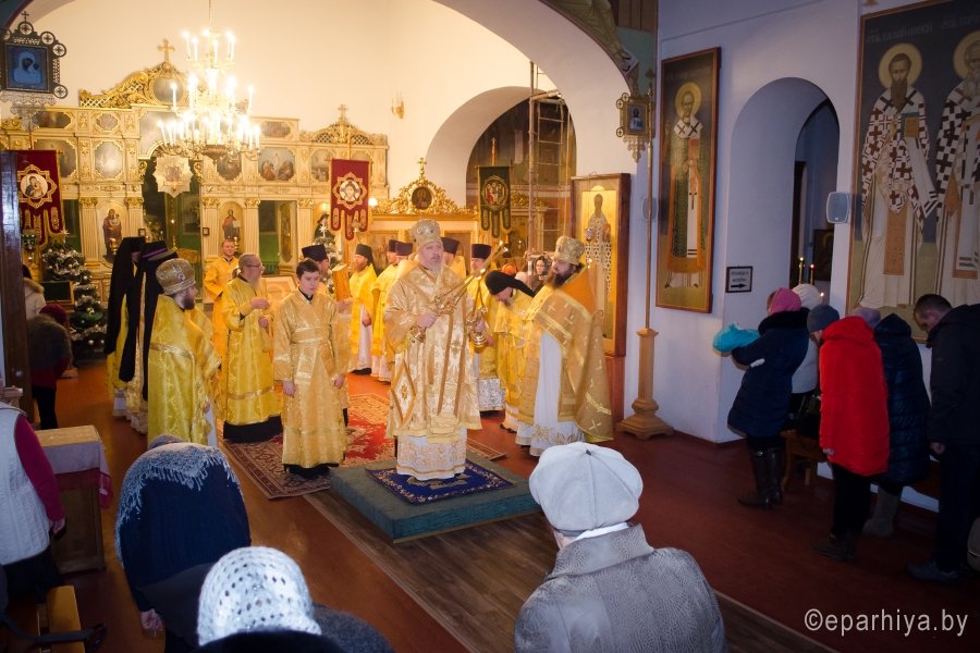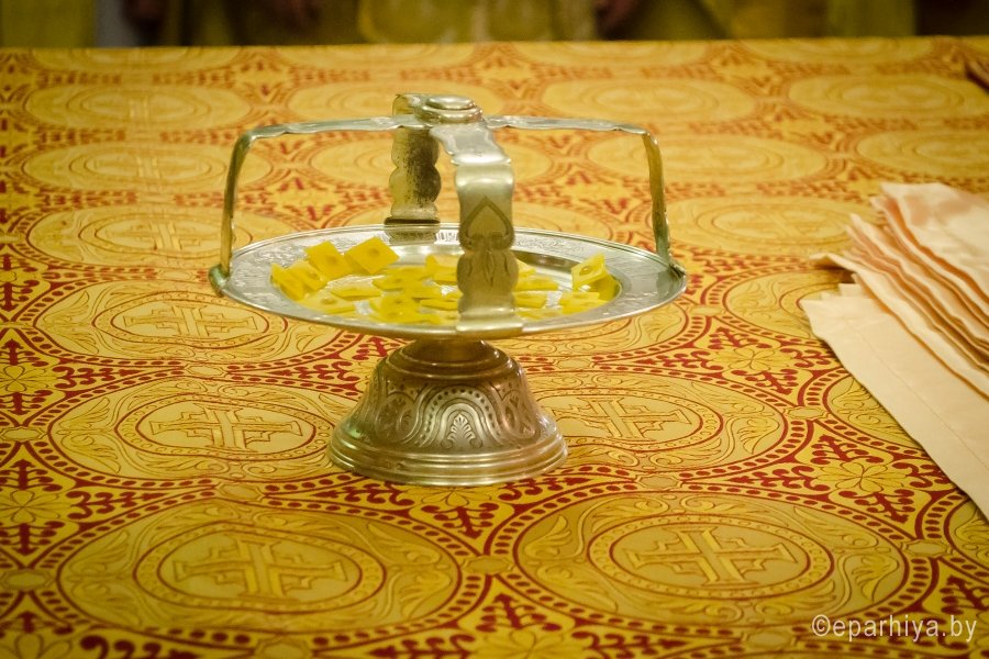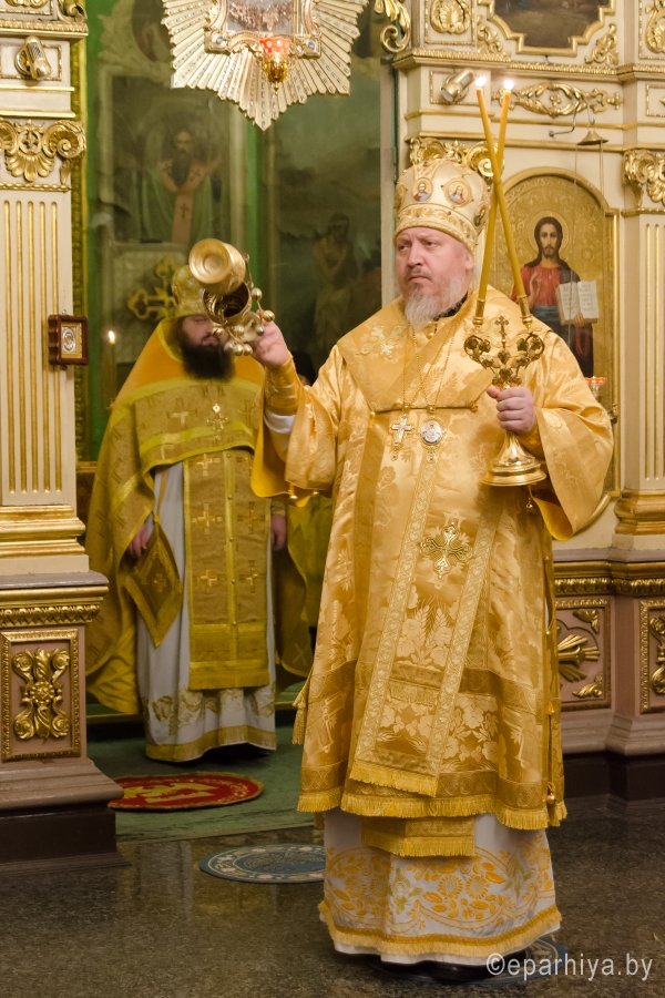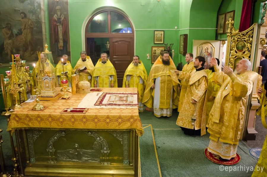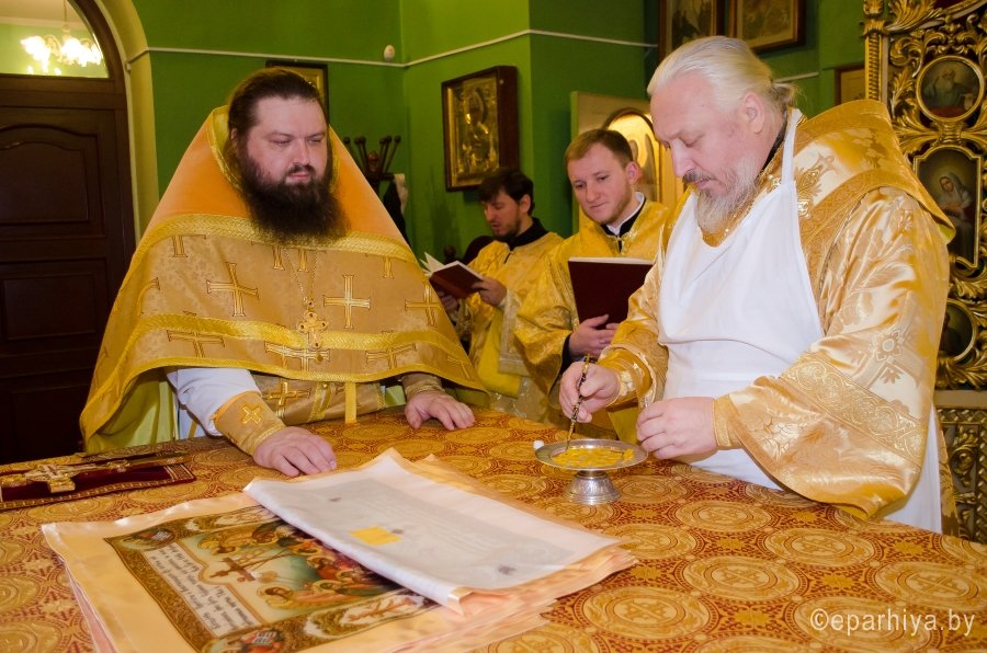 4 января 2017г., в день своего монашеского пострига, Преосвященный Стефан, епископ Гомельский и Жлобинский совершил Божественную литургию в Свято-Никольском мужском монастыре г. Гомеля. Преосвященному сослужили: наместник монастыря архимандрит Амвросий (Шевцов), братия монастыря в священном сане и духовенство Гомельской епархии. За Божественной литургией Владыка совершил чин освящения Антиминсов. За богослужением молилась игуменья Свято-Тихвинского женского монастыря игуменья Вера (Афонькиина) с сестрами. По окончании богослужения Председатель Информационного отдела Гомельской епархии протоиерей Олег Кострома поздравил Преосвященного Стефана с прошедшим Днем рождения и Днем пострига и преподнес в дар букет цветов. Антиминс (греч. antimension «вместопрестолие», от греч. anti вместо и лат. mensa стол), четырехугольный плат с изображением положения Иисуса Христа во гроб из льняной или шелковой материи, с вшитыми частицами мощей святых, на котором совершается Таинство Евхаристии. |