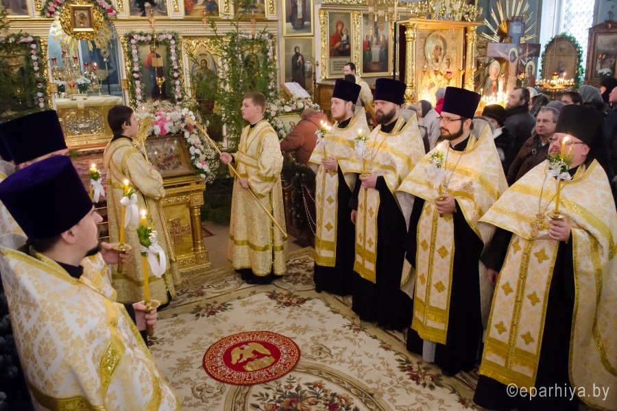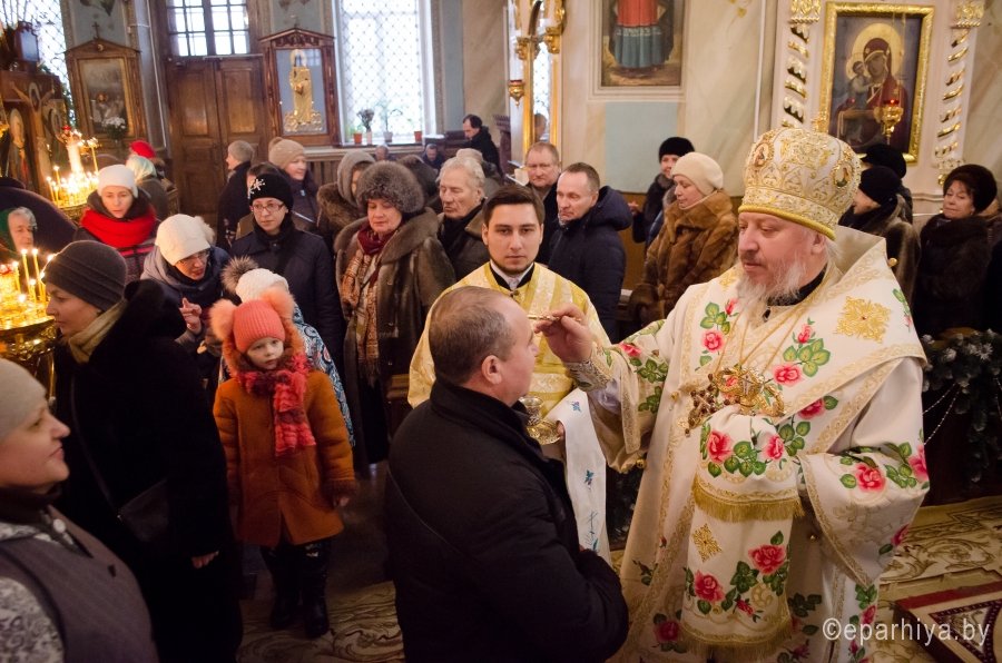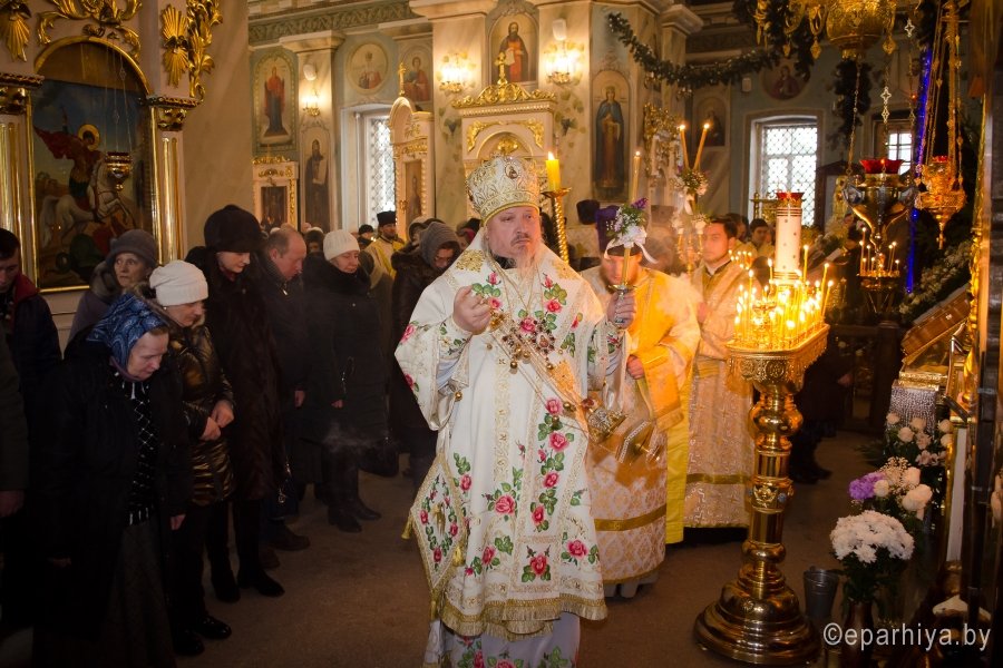 7 января 2017 г., в канун Недели 29-й по Пятидесятнице, по Рождестве Христовом, Преосвященный Стефан, в сослужении духовенства собора, совершил всенощное бдение в Свято-Петро-Павловском кафедральном соборе г. Гомеля. По окончании богослужения Владыка поздравил всех с праздником, а каждый маленький прихожанин получил сладкий подарок. |
