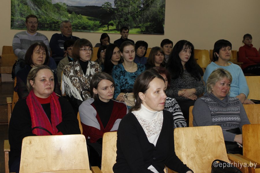 5 января 2016 г. на базе ГУО "Гимназия г. Ветки" в рамках мероприятий, посвящённых празднику Рождества Христова, состоялась встреча педагогов общеобразовательных учреждений Ветковского района и представителей духовенства Чечерского благочинного округа. На встрече присутствовали более 50 педагогов и директоров ГУО Ветковского р-на, от духовенства - благочинный Чечерского округа протоиерей Георгий Шмидов, ответственный по образованию в Чечерском благочинии протоиерей Сергий Андреев, ответственный по работе с молодёжью протоиерей Андрей Булацкий. Педагогами было подготовлено много вопросов и предложений к священникам. На встрече было приведено много интересных действенных примеров из Евангелия, из житий святых, просто из жизни. Встреча прошла оживлённо и интересно. Неформальная атмосфера помогла лучше понять друг друга и вызвала ощущение единения в одно общем деле - воспитании нового поколения. Все педагоги получили в подарок журнал "Сретение" и выразили желание сделать такие встречи традиционными. |