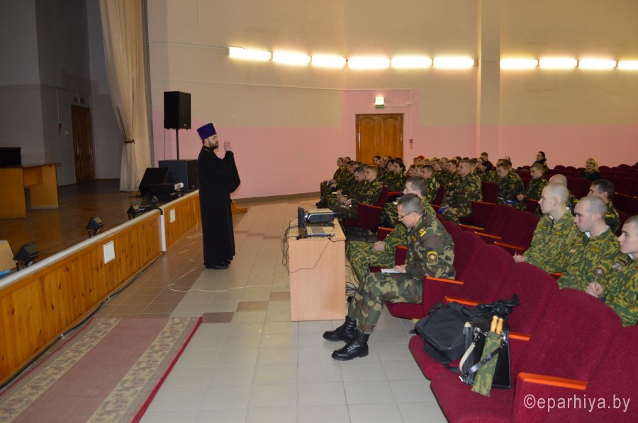 10 января 2017 г. в здании Детской музыкальной школы № 2, г. Речицы прошла встреча, посвящённая началу учебного года в 6-й отдельной патрульно-постовой роте в/ч 5525, которая базируется в г. Речице. На мероприятие был приглашен клирик Свято-Успенского собора, протоиерей Ростислав Миронович. В своём напутственном слове священнослужитель сказал, что сегодня у военнослужащих особый день. Родина доверила им защиту своей независимости, целостности и суверенитета. Но без постоянного совершенства своих боевых и профессиональных навыков выполнение таких задач осуществить невозможно. И только постоянно оттачивая своё мастерство в учебных классах можно достичь зримых результатов. Протоиерей Ростислав пожелал всем военнослужащим Божьего благословения в их ратном труде, мирного неба над головой, крепости духовных и телесных сил и что бы им приходилось применять свои навыки только в учебном бою. В этот день в 5-й отдельной патрульной роте в/ч 5525 г. Светлогорска состоялся митинг, посвящённый открытию нового периода обучения. На митинге с напутственным словом выступил благочинный Светлогорского округа, настоятель Спасо-Преображенского собора протоиерей Александр Кисель. В начале своего выступления священник поздравил с Рождеством Христовым и святками: «Святки – это период от Рождества Христова до Крещения Господня, когда вся Православная Церковь торжествует о рождении Богомладенеца Христа и Его крещении. Эти праздники напоминают нам о событиях Библейской истории и о миссии, которую выполняет Господь своим рождением. В праздничные дни мы призываем имя Божие, молясь о мире, благополучии, добре и спасении своей души». В завершении своей речи протоиерей Александр благословил на начало нового периода обучения военнослужащих и пожелал, чтобы свет Вифлеемской звезды озарял их жизненный путь. Торжественное мероприятие 10 января состоялось в войсковой части 5525 г. Гомеля, которое также ознаменовало открытие периода обучения военнослужащих. Традиционно на боевую учебу военнослужащих в/ч 5525 благословил Председатель отдела по взаимодействию Гомельской епархии с Вооруженными Силами и правоохранительными органами протоиерей Игорь Ольшанов. Священнослужитель поздравил всех присутствующих с праздником Рождества Христова и пожелал успехов и Божьей помощи в освоении воинской науки. |
