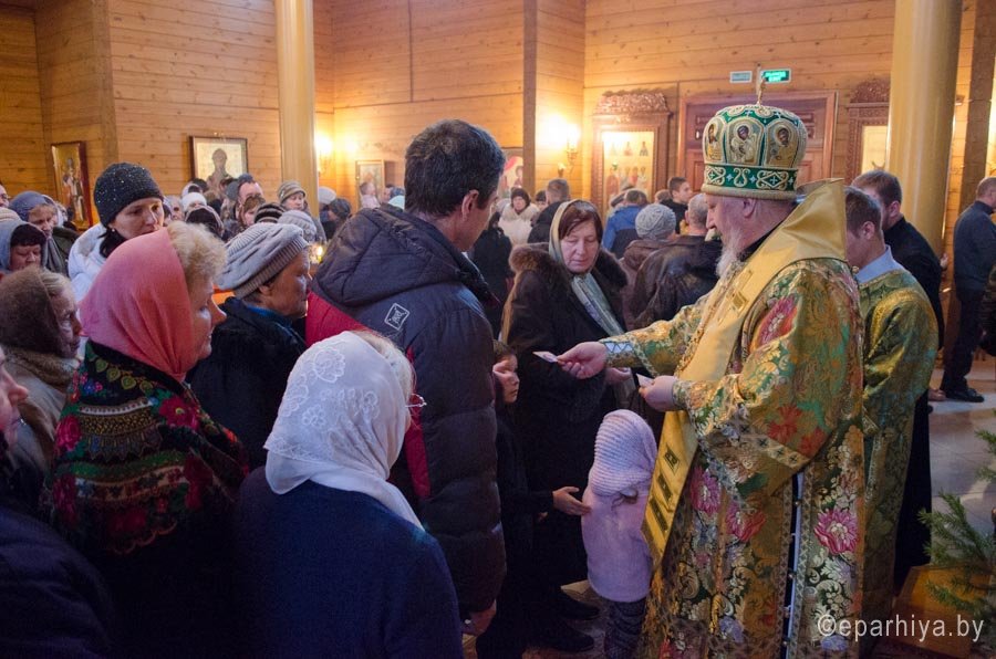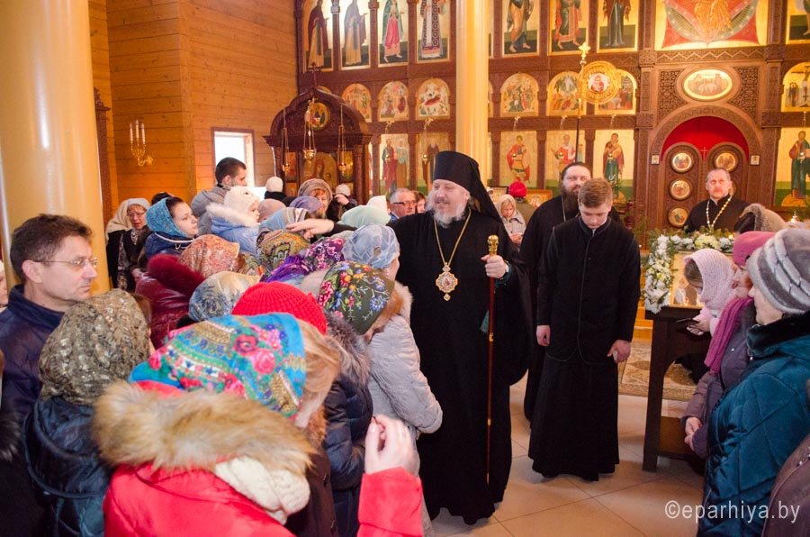 15 января 2017г., в день памяти прп. Серафима Саровского Преосвященный Стефан совершил Божественную литургию в одноименном храме г. Жлобина. Преосвященному сослужили: секретарь Гомельской епархии протоиерей Георгий Алампиев, благочинный монастырей Гомельской епархии архимандрит Амвросий (Шевцов) и духовенство храма. По окончании богослужения Владыка поздравил причастников с принятием Святых Христовых Таин и обратился к молящимся со словами Архипастырского назидания. В память об этом дне Владыка Стефан раздал молящимся иконки Рождества Христова, а каждый маленький прихожанин получил сладкий подарок. |