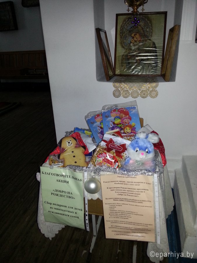 В приходе храма святого преподобного Серафима Саровского в г. Гомеле завершилась благотворительная акция «Добро на Рождество». В течение месяца прихожане и все желающие могли поделиться частичкой добра с детьми из многодетных и малообеспеченных семей – принести и оставить в храме подарок для ребенка. Установленный для подарков «Ящик добра» недолго оставался пустым. Чудесным образом он стал наполняться игрушками, школьными принадлежностями и сладкими подарками. Все принесенное распределялось среди детей из опекаемых семей и приносило им просто огромную радость! Рождество, воистину, чудесное время. Так же чудесно прошла и данная акция. Выражаем благодарность всем, принявшим участие! И желаем всем побольше добра в течение всего года! |