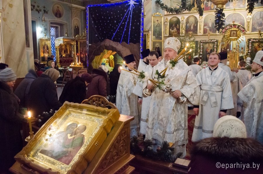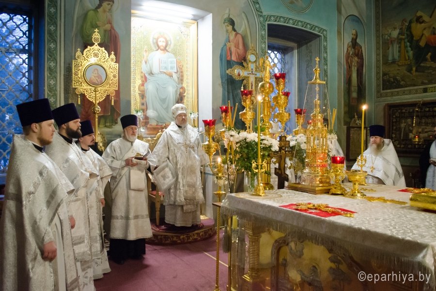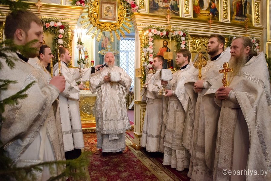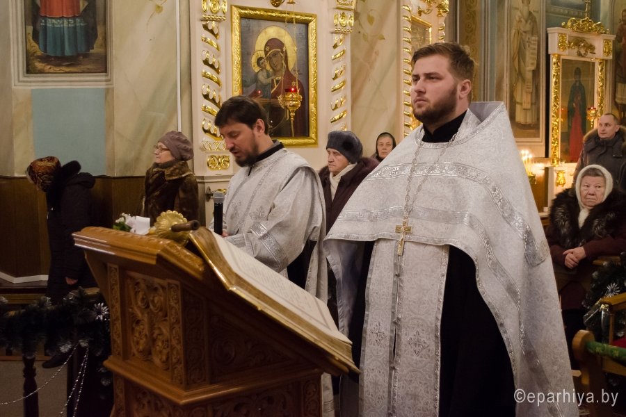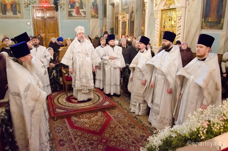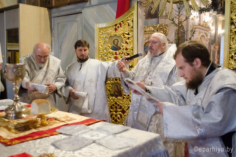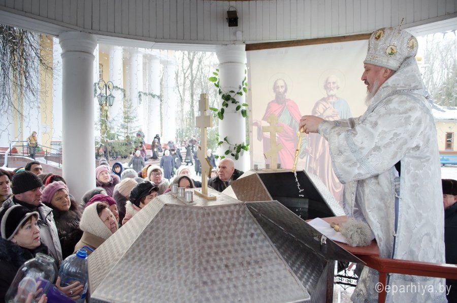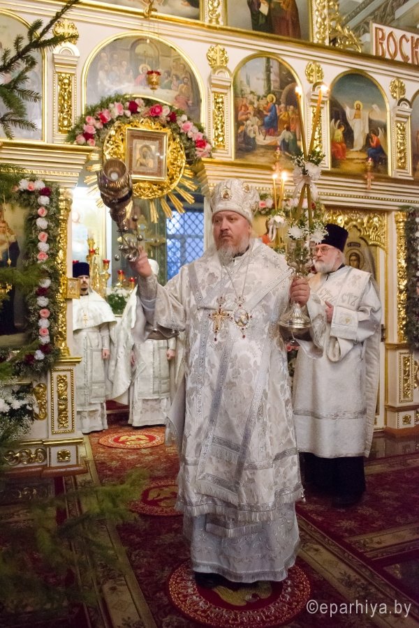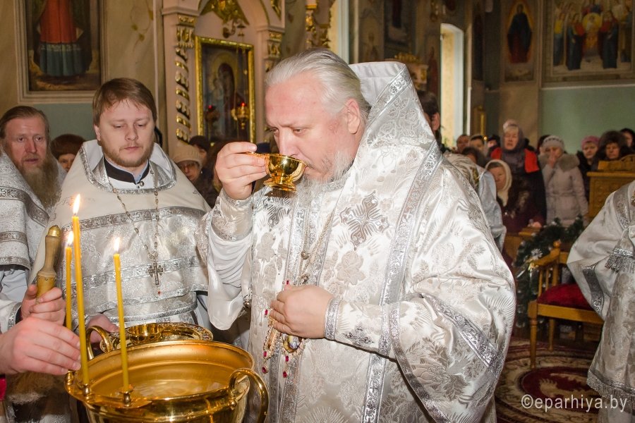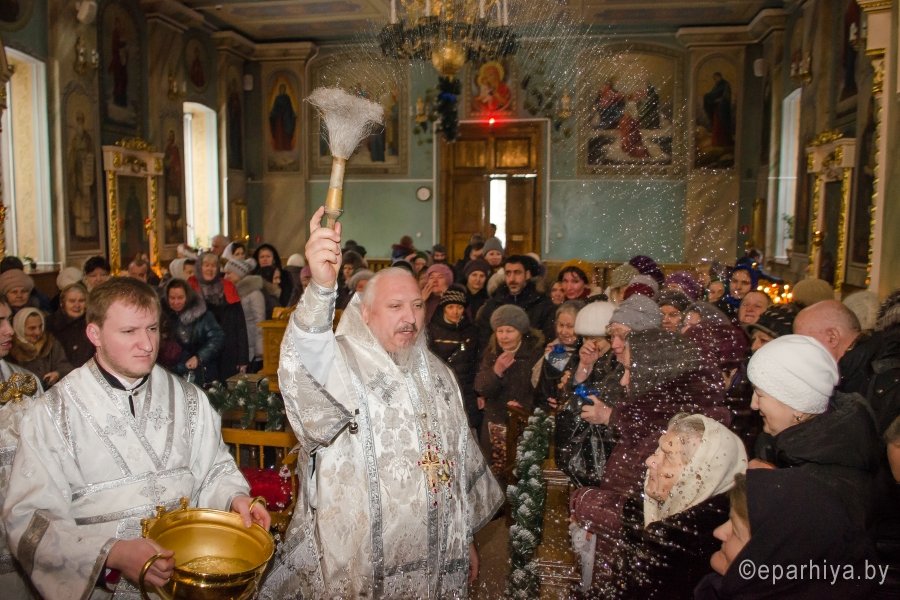 18 января 2017г., в навечерие Богоявления (Крещенский сочельник), Преосвященный Стефан совершил Божественную литургию в Свято-Петро-Павловском кафедральном соборе г.Гомеля. Преосвященному сослужили: секретарь Гомельской епархии протоиерей Георгий Алампиев и духовенство собора. По окончании Литургии Владыка совершил чин великого освящения воды. Затем Преосвященный поздравил верующих с сочельником и наступающим праздником Богоявления. |