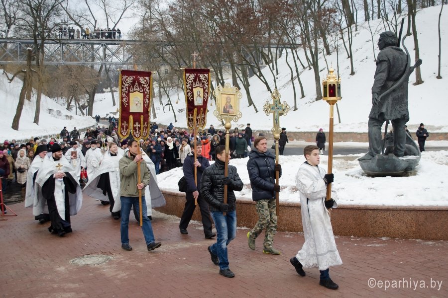 19 января 2017 года, в праздник Крещения Господня, Преосвященный Стефан, совершил праздничную Божественную литургию в Свято-Петро-Павловском кафедральном соборе города Гомеля. Владыке сослужил секретарь Гомельской епархии протоиерей Георгий Алампиев и духовенство собора. По завершении Литургии Владыка вместе с духовенством собора совершил чин Великого освящения воды и возглавил Крестный ход к набережной реки Сож. Вместе с Правящим архиереем в этот светлый крещенский день молилось множество прихожан, которые получили пастырское благословение. Фото: Роман Карпенко Фото: Анна Пащенко |