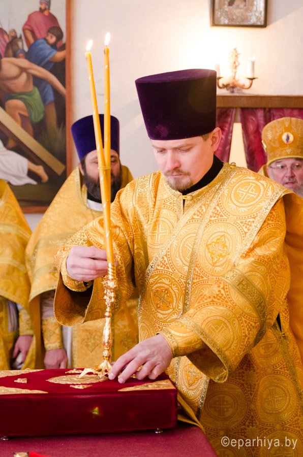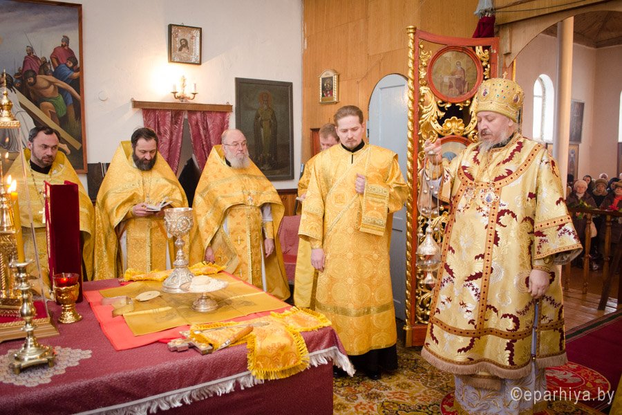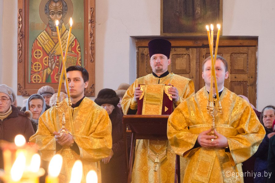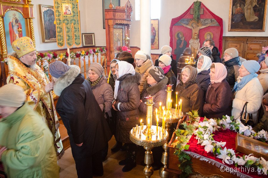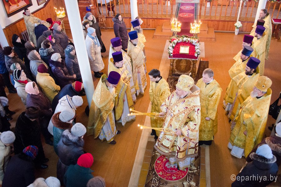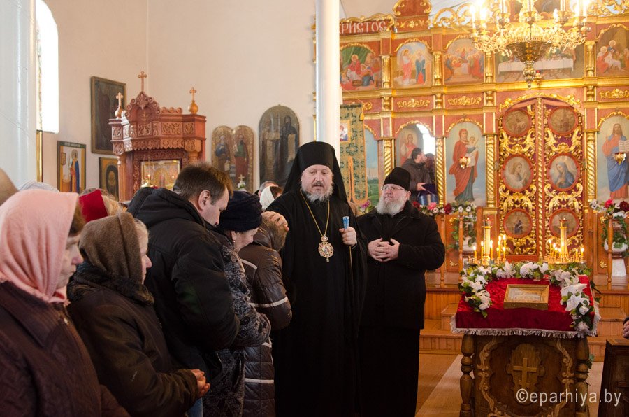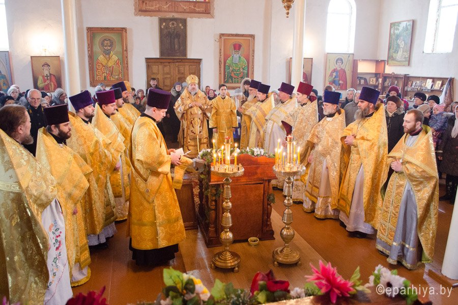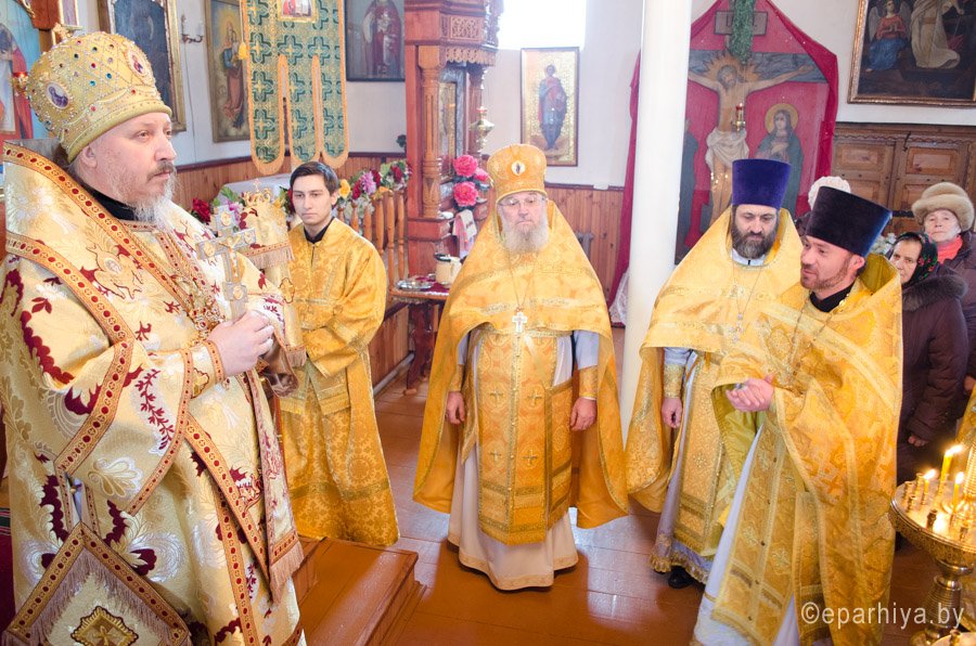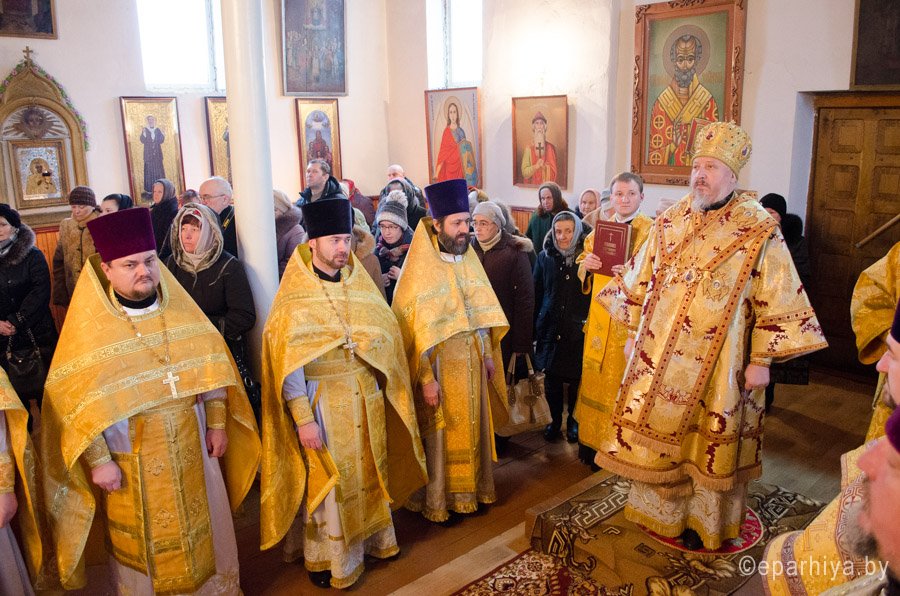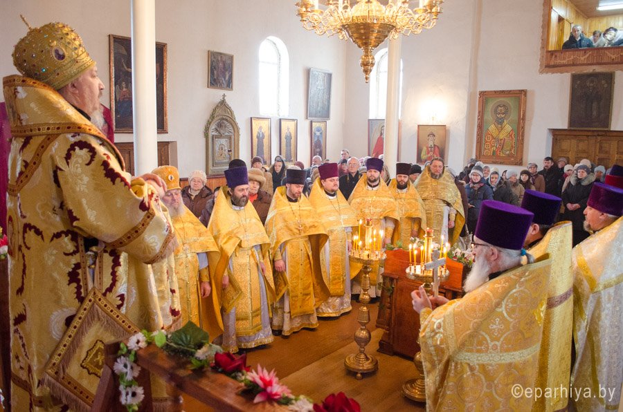 12 февраля 2015г., в день празднования Собора Вселенских учителей и святителей Василия Великого, Григория Богослова и Иоанна Златоуста, Преосвященнейший Стефан, в соборном сослужении духовенства Речицкого благочинного округа возглавил Божественную литургию в храме святителя Николая Чудотворца г.п. Василевичи. По окончании богослужения Преосвященнейший Стефан поздравил всех присутствующих с праздником, а в словах проповеди рассказал о жизни и Церковных трудах святителей. Особое внимание Владыка уделил приближающемуся Великому Посту и предшествующим ему подготовительным неделям. В завершении богослужения Преосвященный пообщался с прихожанами, которые смогли получить его архипастырское благословение. |