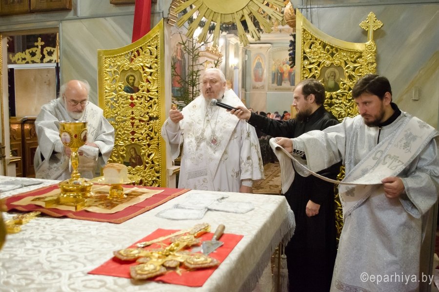 20 января 2017г., в день Собора Предтечи и Крестителя Господня Иоанна, Преосвященный Стефан совершил Божественную литургию в Свято-Петро-Павловском кафедральном соборе г. Гомеля. Преосвященному сослужили: секретарь Гомельской епархии протоиерей Георгий Алампиев, благочинный монастырей Гомельской епархии архимандрит Амвросий (Шевцов), благочинный Гомельского городского округа протоиерей Игорь Ольшанов и духовенство собора. Со словами проповеди по запричастном стихе к молящимся обратился клирик Свято-петро-Павловского кафедрального сбора г. Гомеля протоиерей Александр Лопушанский. По окончании богослужения Владыка поздравил молящихся с праздником и обратился со словами Архипастырского назидания. |