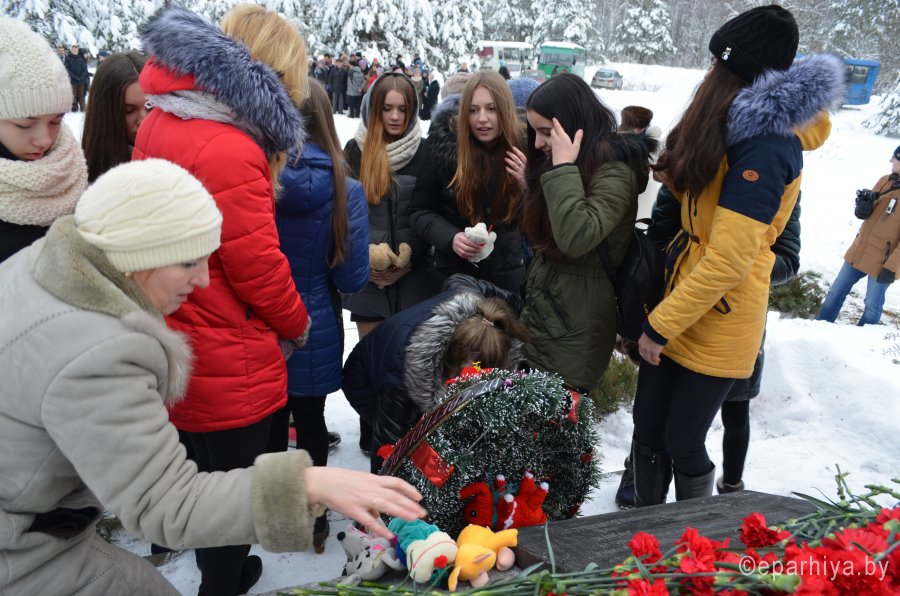 13 января отдать дань уважения и почтить память невинно убитых людей собрались представители Светлогорского райисполкома, Православной Церкви, студенты Светлогорского индустриального колледжа, учащиеся школ Светлогорска и Гомеля. 73 года назад случилась страшная трагедия: январским утром в 6 часов утра к небольшой деревушке Ола подошел немецкий карательный отряд и окружил ее. К несчастью, в те дни в деревне нашли себе укрытие множество мирных жителей, в основном женщины, старики и дети. Большинство людей немецкие солдаты согнали в большой колхозный сарай на окраине деревни, заперли и подожгли, а тех, кто пытался выбежать и спастись из объятого огнем здания – расстреливали. Зверства карательного отряда унесли жизни 1758 человек, из которых 950 – дети. После такого деревня не оправится уже никогда… На нынешнем траурном митинге присутствовали доктор исторических наук, профессор Анатолий Шарков и журналист Елена Хорошевич, лауреаты премии «За духовное возрождение». У них была высокая и благородная миссия: передать землю из Олы в Храм-памятник в честь Всех Святых и в память безвинно убиенных во Отечестве нашем. Этот Храм находится в Минске и является главным духовным общенациональным мемориалом в память о миллионах белорусов, погибших и разбросанных по всему миру. В крипте храма собраны земля с полей всех великих исторических сражений в защиту отечества, а также с мест захоронений мирных жителей, ставших жертвами военных действий. Забор земли для передачи в крипту осуществили председатель Чирковичского сельисполкома Владимир Лахардов и председатель Светлогорской районной организации ветеранов Валентина Рудинская. Благочинный Светлогорского округа, настоятель Спасо-Преображенского собора протоиерей Александр Кисель совершил заупокойную литию и окропил капсулу с землей. Константин Петровский, заместитель председателя Светлогорского райисполкома, от лица руководства и жителей района передал освященную землю Елене Хорошевич. – Забыть прошлое, те страдания и горе, которые выпали на долю нашего народа во время Великой Отечественной войны – значит предать тех людей, которые боролись за свободу нашей Родины, которые невинно пострадали от рук фашистских карателей, – сказала Елена Ивановна. – Ни мы, ни наши дети, не должны забыть эту боль никогда. Нужно помнить своих предков и ценить мирную жизнь. К участникам митинга обратился благочинный Светлогорского округа, настоятель храма Преображения Господня протоиерей Александр Кисель. – Подобные трагические примеры гибели тысяч невинных людей потрясают жестокостью войны, - сказал протоиерей Александр. – Мы должны молиться за них, вознося молитву к Богу за тех мучеников, которые приняли на себя страшный вызов войны и принесли себя в жертву ради нашего мира. Чтобы милостивый Господь вселил их в Царство Небесное, а мы, следуя закону Божию, постарались исправить свою жизнь к лучшему. Каждый из выступавших на митинге отметил, что война оставила много мест скорби на белорусской земле, множество горя принесла жителям. Каждый из нас должен помнить и знать о тех событиях, чтобы не допустить трагедий в настоящем и будущем. После минуты молчания участники митинга возложили венки и цветы к Памятному Кресту. Учащиеся школ и студенты лицея положили цветы и игрушки в память о детях погибш