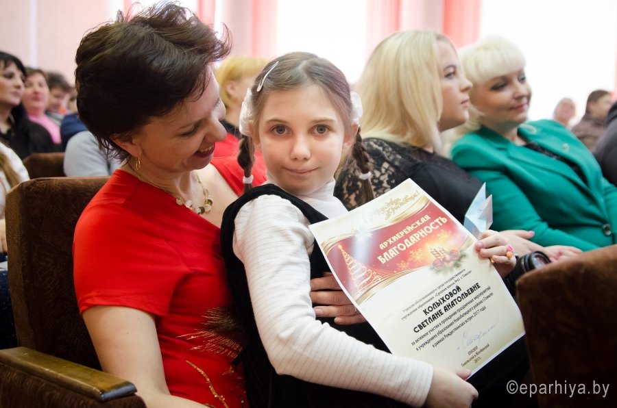 21 января 2017 года в актовом зале государственного учреждения образования «Средняя школа № 1 г.Гомеля» праздничным концертом завершился цикл традиционных рождественских мероприятий «Рождественские встречи», проводимых по благословению Преосвященнейшего Стефана, епископа Гомельского и Жлобинского, в учреждениях образования Новобелицкого района г. Гомеля. На церемонии закрытия присутствовали: благочинный церквей Гомельского городского округа протоиерей Игорь Ольшанов, настоятель прихода храма святого благоверного князя Александра Невского в г.Гомеле протоиерей Владимир Силенко, заместитель главы администрации Новобелицкого района г.Гомеля Зубец В.Н., начальник отдела образования, спорта и туризма администрации Новобелицкого района Копа Е.Н., главный специалист отдела Дуборезова В.Ю., педагоги, родители и дети. С приветственным словом к присутствующим обратился протоиерей Игорь Ольшанов. Поздравив всех с праздником Рождества Христова, он также сказал: «Хочу пожелать руководству школы и тем, кто здесь учится – творите, потому что у вас это получается. Учителям хочу пожелать терпения, учащимся послушания учителям, потому что учитель плохому никогда не научит, а всегда даст хороший пример, хорошие знания. Поэтому, в добрый путь, друзья!» Протоиерей Игорь Ольшанов от лица Владыки, Зубец Василий Николаевич и Копа Елена Николаевна от лица администрации района вручили благодарственные письма и дипломы организаторам и участникам «Рождественских встреч». После награждения состоялся гала-концерт, на котором были представлены лучшие номера и работы. Также была организована выставка рисунков и декоративно-прикладного творчества, выставка объемных работ «Рождественская елка», конкурс «Рождественские блюда». |