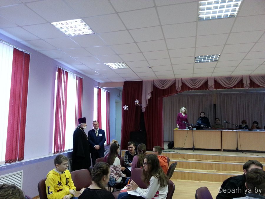 С приветственными словами перед участниками состязания выступил директор школы и отец Анатолий. Священник, в своём напутственном слове коснулся темы, что все наши дары, в том числе и ум, даны нам Господом. И не стоит думать, что мы можем делать с нашими способностями все, что захотим. Нужно направлять все усилия на сотворение добрых дел. В конце священник благословил участников и пожелал всем доброй игры. От прихода храма для награждения ребят были переданы иконки и сладкие подарки.
