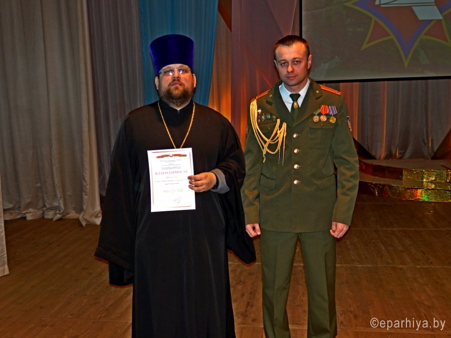 В большом зале ГЦК г. Светлогорска отметили свой профессиональный праздник, работники и ветераны органов и подразделений по чрезвычайным ситуациям Республики Беларусь. В этот праздничный день торжественная программа посвящена дню спасателя, на которой звучало множество пожеланий и поздравлений в их адрес. В качестве почетного гостя был приглашен клирик храма Преображения Господня иерей Евгений Новик. С профессиональным праздником коллег поздравил начальник Светлогорского районного отдела по чрезвычайным ситуациям подполковник внутренней службы Игорь Викторович Ходанович. В своем поздравительном слове пожелал всем крепкого здоровья, семейного благополучия, бодрости и взаимопонимания. От лица духовенства Светлогорского благочиния иерей Евгений Новик поздравил всех спасателей со святками и профессиональным праздником спасателя. Священник пожелал крепкого здоровья, любви, помощи Божией и семейного благополучия. За участие в воспитании духовных и нравственных ценностях спасателей и профилактическую работу, начальник Светлогорского районного отдела по чрезвычайным ситуациям подполковник внутренней службы Игорь Викторович Ходанович вручил благодарность Светлогорского районного отдела по чрезвычайным ситуациям иерею Евгению Новику. В продолжении программы работникам и ветеранам по чрезвычайным ситуациям , присвоили очередное звание, вручили медали и благодарности за безупречную службу и успехи в работе. |