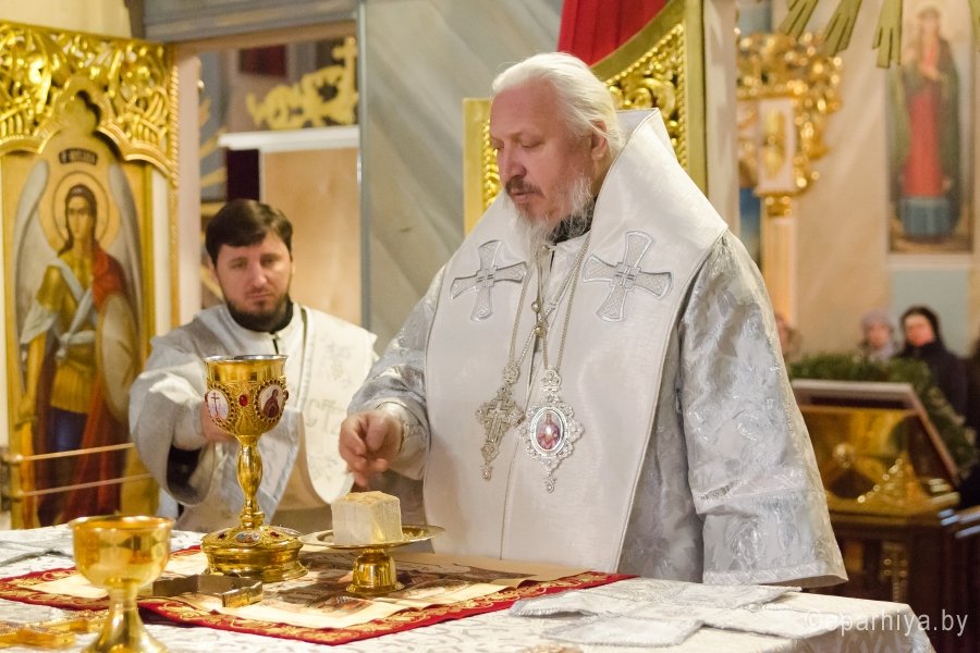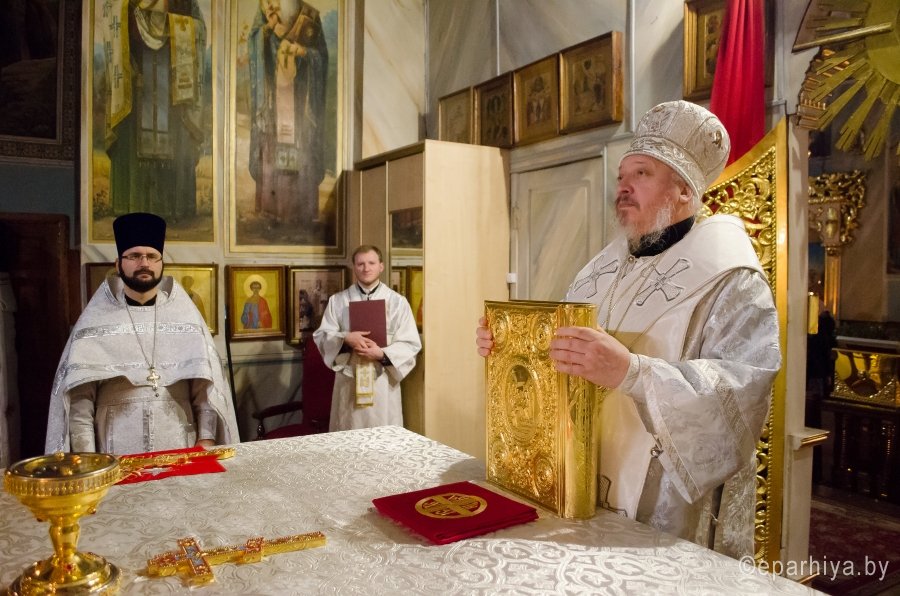 27 января 2017г., в отдание праздника Богоявления, Преосвященный Стефан, в сослужении духовенства собора, совершил Божественную литургию в Свято-Петро-Павловском кафедральном соборе г. Гомеля. По окончании богослужения Владыка поздравил причастников с принятием Святых Христовых Таин и обратился к молящимся со словами Архипастырского назидания. |
