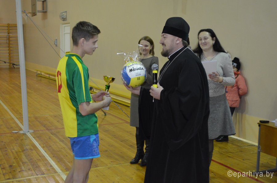 В Светлогорском благочинном округе завершился региональный этап турнира по волейболу среди юношей на кубок Молодежного отдела Гомельской епархии Белоруской Православной Церкви. В турнире приняли участие команды учреждений общего среднего образования на кубок и призы Светлогорского благочиния. Финальная игра прошла в спортивном зале ГУО "Средняя школа №12 г. Светлогорска", где состязались 4 команды, вышедшие в финал отборочного турнира: ГУО "Гимназия г. Светлогорска", средние школы №3, №4 и №9 г. Светлогорска. Команды показали очень высокий уровень игры, каждая команда сражалась до последнего, чтобы завоевать призовое место. Участники турнира по волейболу разыгрывали сложные комбинации под чутким руководством тренеров команд, что вызывало у болельщиков много эмоций и острых ощущений. По результатам финальной игры третье место заняла команда ГУО "Средняя школа №3 г. Светлогорска". Второе место завоевала команда ГУО "Средняя школа №4 г. Светлогорска". Первое место и титул победителя среди юношей по волейболу в отборочном турнире досталось ребятам из ГУО "Гимназия г. Светлогорска". Команда победителей завоевала право представлять Светлогорский район на областном турнире по волейболу на кубок Молодежного отдела Гомельской епархии. Победителей и участников отборочного турнира поздравил благочинный Светлогорского округа, настоятель храма Преображения Господня г. Светлогорска протоиерей Александр Кисель. Священник поблагодарил все команды за участие в игре и отметил: – Уже второй год мы проводим, спортивные игры на кубок молодежного отдела Гомельской епархии, - сказал он. – Команда победителей представит Светлогорский район в г. Гомеле. Команды показали очень интересную и захватывающую игру и приложили немало усилий в достижении победы. На сегодняшний день Православная Церковь тесно сотрудничает с отделом образования в совместном возрождении традиций и культуры нашего народа. Хочется, чтобы духовно–нравственные ценности нового поколения приумножились. В завершении своей речи протоиерей Александр вручил подарки и награды команде победителей. Заместитель начальника отдела образования, спорта и туризма Вераксич Лариса Афанасьевна выразила слова благодарности участникам турнира, а командам, занявшим второе и третье места, вручила дипломы и сладкие призы. |