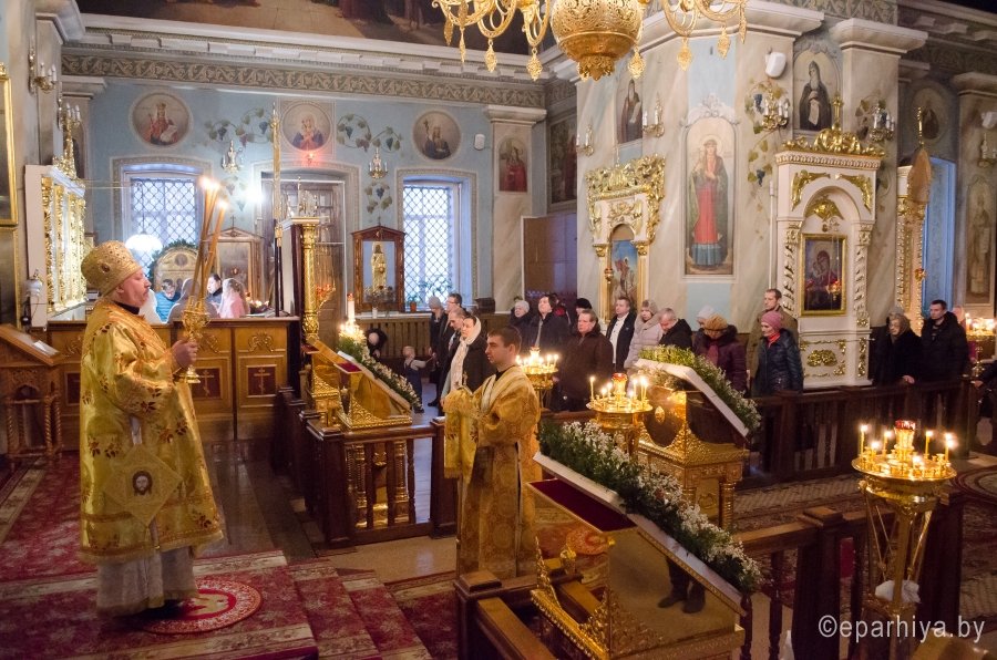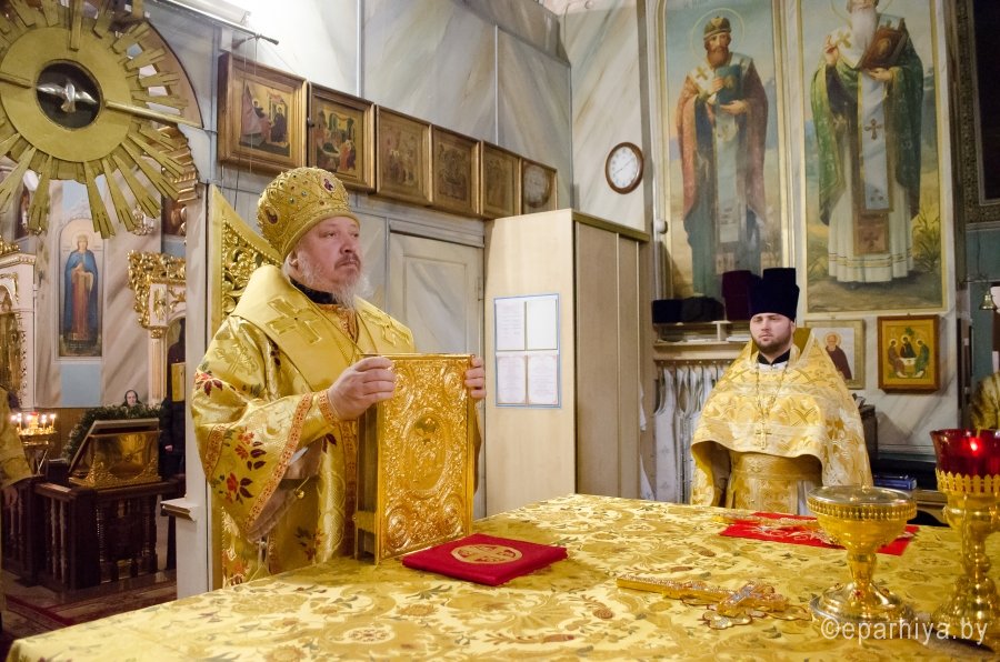 28 января 2017г., в субботу 32-й седмицы по Пятидесятнице, Преосвященный Стефан, в сослужении духовенства собора, совершил Божественную литургию в Свято-Петро-Павловском кафедральном соборе г. Гомеля. По окончании богослужения Владыка поздравил причастников с принятием Святых Христовых Таин и обратился к молящимся со словами Архипастырского назидания. |