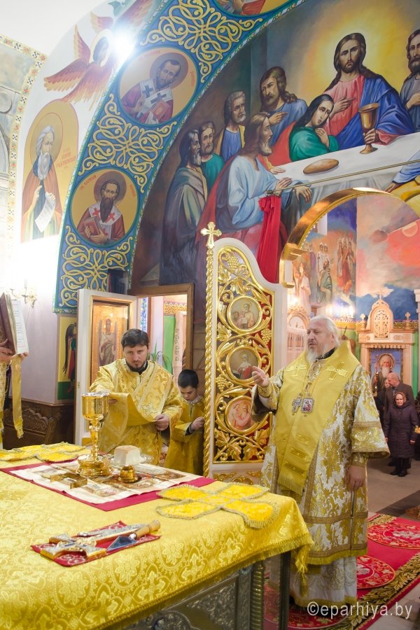 29 января 2017г., в Неделю 32-ю по Пятидесятнице, день Поклонения честным веригам ап. Петра, Преосвященный Стефан совершил Божественную литургию в храме преподобного Сергия Радонежского г.Гомеля Преосвященному сослужили: секретарь Гомельской епархии протоиерей Георгий Алампиев, благочинный Гомельского городского округа протоиерей Игорь Ольшанов и духовенство собора. По окончании богослужения Владыка поздравил причастников с принятием Святых Христовых Таин и обратился к молящимся со словами Архипастрского назидания. Святой апостол Петр, по приказанию царя Ирода, был ввергнут в темницу и скован двумя железными цепями.Но ночью, когда он спал среди двух воинов, ангел Господень разбудил его, толкнув в бок, и вывел из темницы, при чем железные вериги упали с рук апостола, как повествуется об этом в книге Деяний Апостольских (Деян.12:1). Весть о чудесном избавлении Петра от оков и темницы разошлась по всему Иерусалиму, - и некоторые из верующих, взяв тайно эти вериги, стали хранить их у себя, чтобы, смотря на них, иметь пред глазами как бы самого первоверховного апостола Петра, который, немедленно по выходе из темницы, отправился для проповеданья слова Божьего в другие страны и не возвращался в Иерусалим. Эти вериги получили от тела апостола, который был крепко ими связан, целебную силу. Верующие с глубоким благоговением чтили эти честные вериги, воздавали им поклонение и тщательно хранили их, как дорогое наследство, из рода в род, при чем каждый раз родители - детям, а те - своим наследникам, объясняли, какого Великого узника касались эти вериги и чьим телом он освящены. Так перешли они по наследству в руки святейшего иерусалимского патриарха Ювеналия. Он подарил их царице Евдокие за ее добрые дела на благо церкви По возвращении в Царьград, Евдокия одну веригу принесла в дар храму святого апостола Петра, находившемуся внутри Великого Софийского собора, а другую послала в Рим своей дочери Евдокии, которая была замужем за римским царем Валентином III-м. Благочестивая, подобно матери, Евдокия с любовью приняла этот драгоценный дар и, построив на Эксквилийской горе храм во имя святого апостола Петра, положила там эту веригу, вместе с найденной в Риме другой веригой святого апостола Петра, которою связал его во время мучений Нерон. После того было установлено совершать 16-го января праздник поклонения этим честным веригам, в память и честь святого апостола Петра и во славу Христа Бога нашего. |