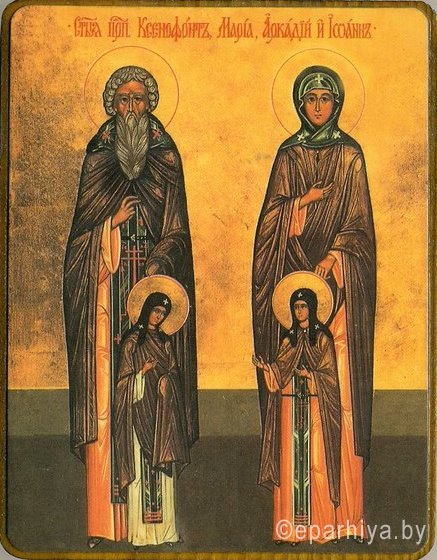 8 февраля (26 января по старому стилю) Седмица 1-я предуготовительная. Глас осмый. Сплошная седмица. Пост отменяется Прпп. Ксенофонта, супруги его Марии и сыновей их Аркадия и Иоанна (V-VI). Преподобный Ксенофонт, супруга его Мария и сыновья их Аркадий и Иоанн, знатные константинопольские граждане, жили в V веке. Несмотря на богатство и знатность, они отличались душевной простотой и добрым сердцем. Желая дать своим сыновьям, Иоанну и Аркадию, более полное образование, они отправили их в финикийский город Бейрут. Промыслом Божиим корабль, на котором отправились оба брата, потерпел крушение. Братья были выброшены волнами на берег в разных местах. Скорбя о разлучении, братья посвятили себя Богу и приняли иночество. Родители долго не получали известий о своих детях и считали их погибшими. Однако преподобный Ксенофонт, уже будучи старцем, сохранял твердое упование на Господа, утешал свою жену Марию, советовал не скорбеть и верить, что дети будут сохранены Господом. Через несколько лет супруги совершили паломничество по Святым местам и встретили в Иерусалиме своих сыновей, подвизавшихся в разных монастырях. Обрадованные супруги благодарили Господа, промыслительно соединившего всю семью. Оставшуюся жизнь преподобные Ксенофонт и Мария посвятили Богу, приняв иночество. Преподобные Аркадий и Иоанн, простившись с родителями, отошли в пустыню, где после долгих подвигов прославились даром чудотворений и прозорливости. Преподобные старцы Ксенофонт и Мария, подвизаясь в безмолвии и строгом постничестве, также получили от Бога дар чудотворений. Прп. Ксенофонта Робейского (1262). Преподобный Ксенофонт Робейский был учеником преподобного Варлаама Хутынского († 1192; память 6 ноября). В Хутынском монастыре он настоятельствовал после игумена Исидора († 1243) Оставив игуменство, преподобный Ксенофонт на берегу реки Робейки (недалеко от Новгорода) основал Троицкую обитель. Здесь он блаженно почил 28 июня 1262 года. Мчч. Анании пресвитера, Петра, темничного стража, и с ними 7 воинов (295). Святые мученики Анания, пресвитер, Петр, темничный страж, и с ними 7 воинов пострадали в Финикии в 295 году. Во время гонений на христиан императора Диоклитиана (284-305) к финикийскому правителю Максиму привели святого Ананию за исповедание веры во Христа и нежелание поклоняться идолам. Его избивали молотками, жгли огнем и на опаленное тело сыпали соль. После страшных пыток по молитве святого мученика разрушился идоложертвенный храм и стоявшие в нем идолы. Святого мученика заключили в темницу. Охранявший его Петр и 7 других воинов, ставшие свидетелями мучений святого пресвитера Анании, уверовали во Христа, за что после долгих мучений были утоплены в море. За мученический подвиг они, вместе со святым мучеником Ананией, получили от Христа венцы славы. Прп. Симеона Ветхого (ок. 390). Преподобный Симеон Ветхий, назван так в отличие от преподобного Симеона Столпника (память 1 сентября), подвизавшегося в Сирии в V веке, в детские годы ушел в пустыню в Сирии и поселился в пещере, в совершенном уединении. Непрерывная молитва, внутреннее самоуглубление и Богомыслие были постоянным его занятием. Подвижник питался только травами, росшими вокруг его пещеры. Когда к нему стали приходить люди, чтобы получить наставление, он, желая сохранить безмолвие, оставил пещеру и переселился на одну из гор Аманс
