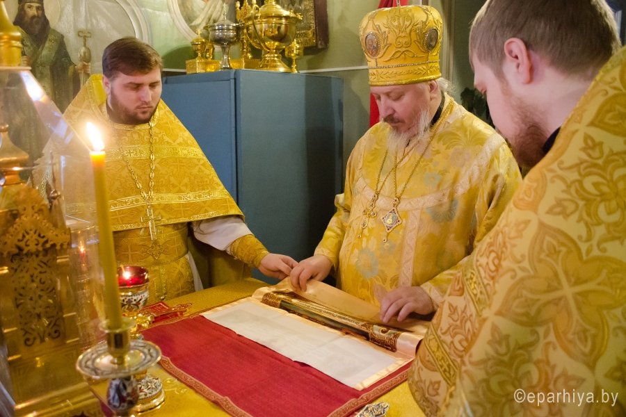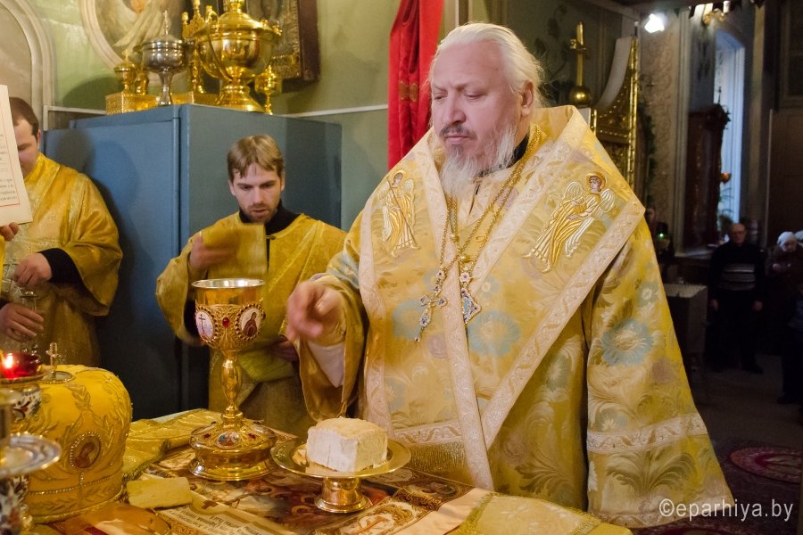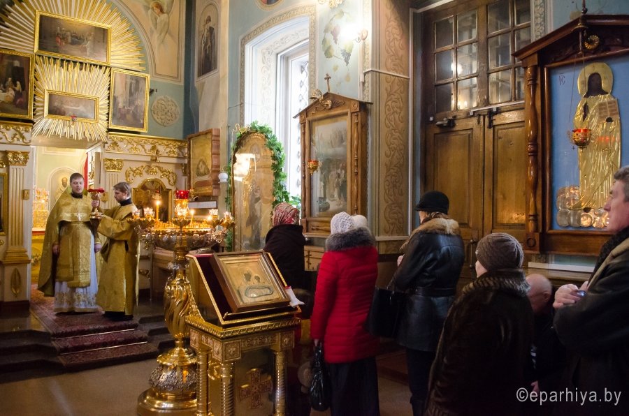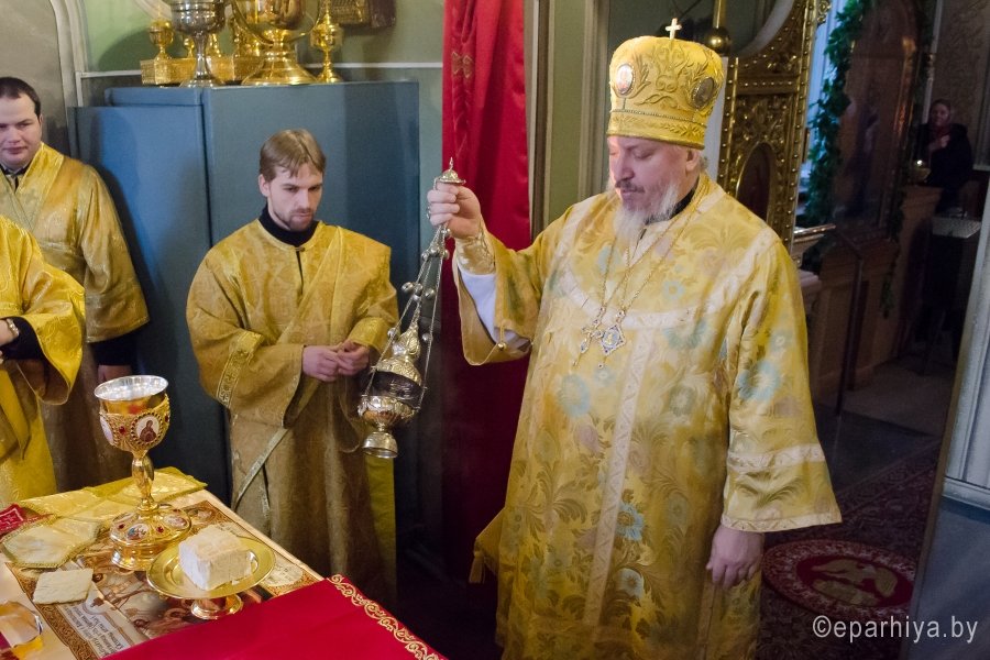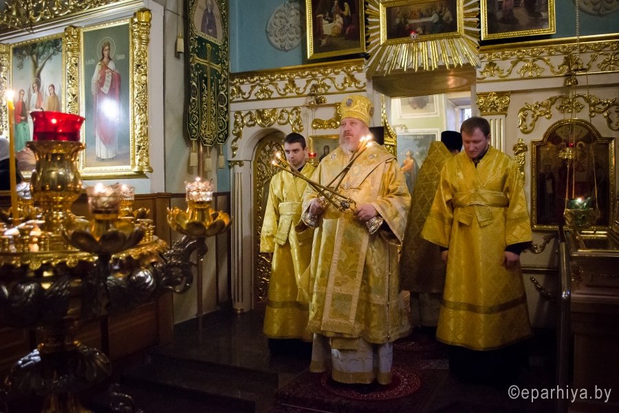 8 февраля 2017г. Преосвященный Стефан, в сослужении духовенства Свято-Петро-Павловского кафедрального собора г.Гомеля, возглавил Божественную литургию в Казанском приделе соборного храма г.Гомеля. По окончании богослужения Владыка обратился к молящимся со словом назидания, пожелав всем помощи Божией, поздравил причастников с принятием Святых Христовых Таин и преподал верующим архипастырское благословение. |