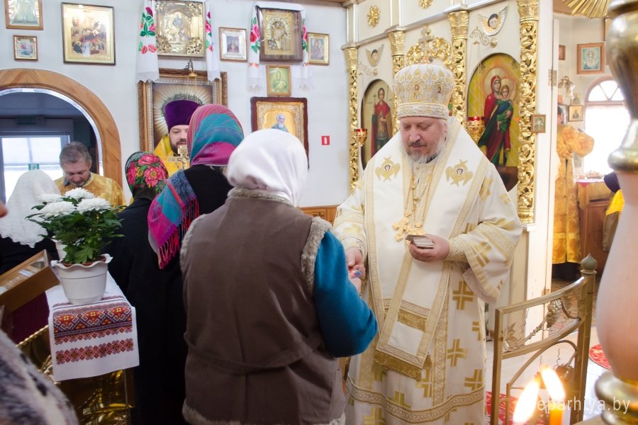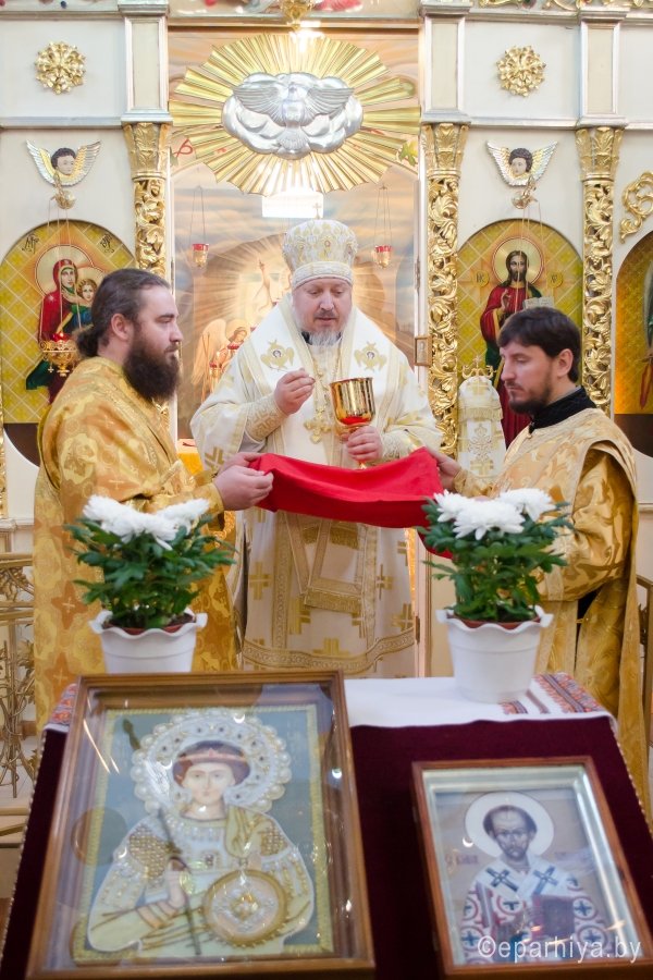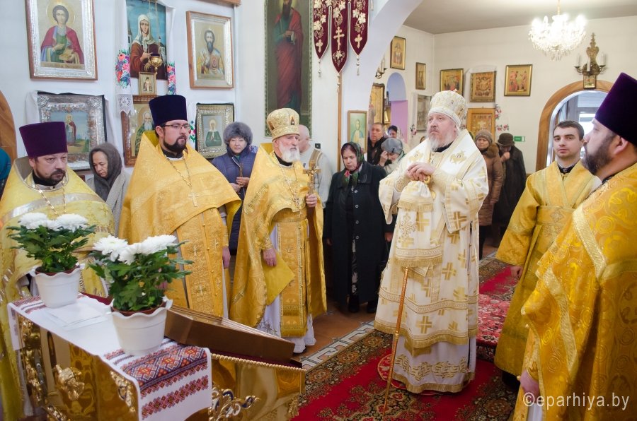 9 февраля 2017г., в день празднования перенесения мощей свт. Иоанна Златоуста, Преосвященный Стефан совершил Божественную литургию в храме св. вмч. Георгия Победоносца г. Гомеля. Преосвященному сослужили: духовник Гомельской епархии протоиерей Стефан Гладыщук, настоятель и духовенство храма. По окончании богослужения Владыка обратился к молящимся со словами Архипастырского назидания. Иоанн Златоуст - великий вселенский учитель и иерарх, скончался в 407 году в городе Команы на пути к месту ссылки, осужденный по проискам императрицы Евдоксии за смелое обличение пороков, царивших в Константинополе. Перенесение его честных мощей из Коман в Константинополь совершилось в 438 году, через 30 лет после смерти святителя, при сыне Евдоксии императоре Феодосии II (408 - 450). |