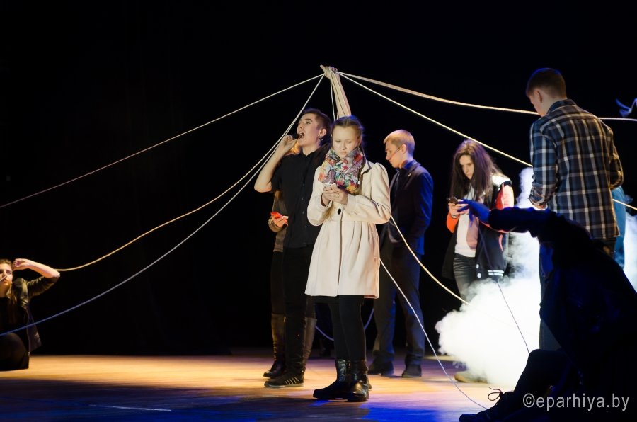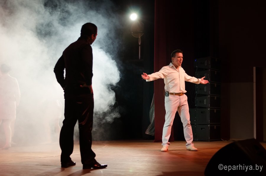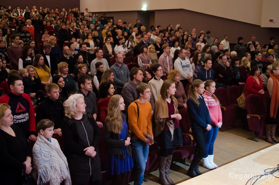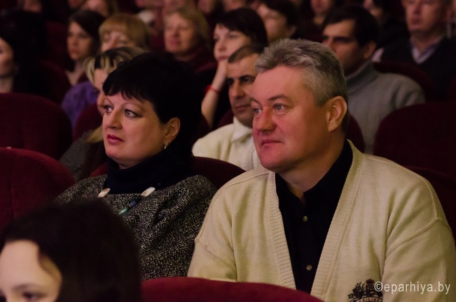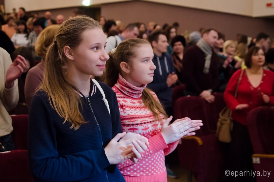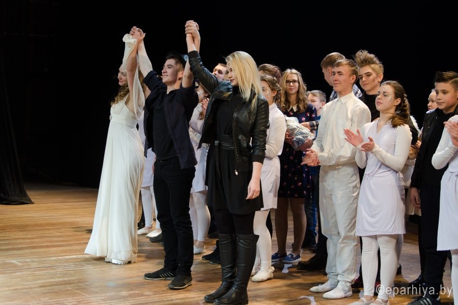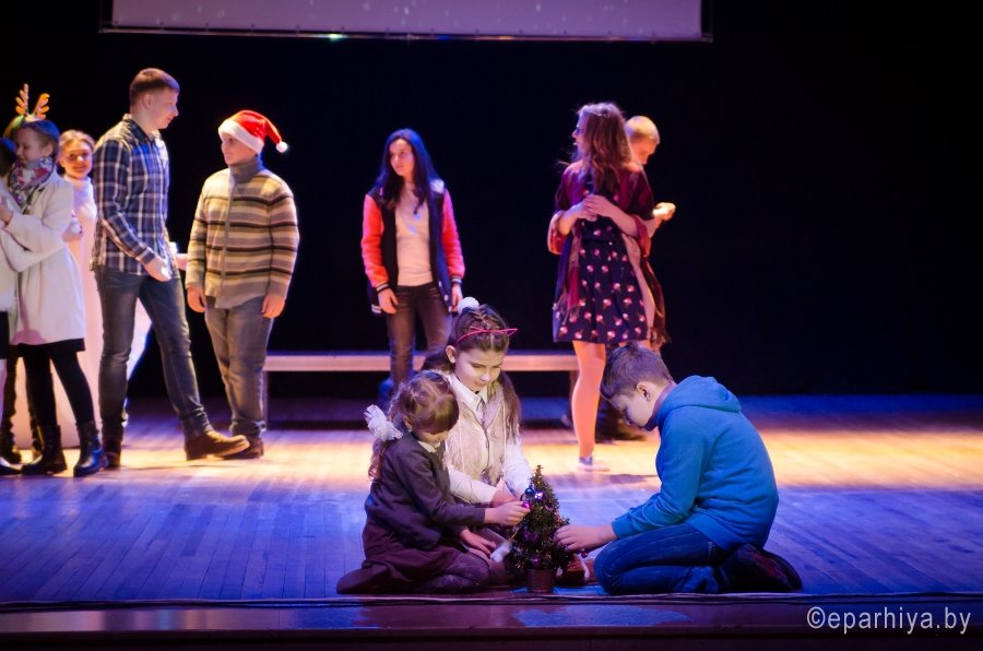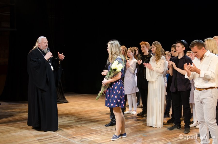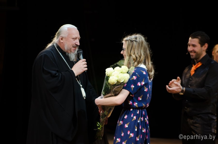 8 февраля 2017г. в ГК "Городской центр культуры", прошел второй показ интерактивного мюзикла "Не забыть о Рождестве", подготовленный силами молодежной группы Спасо-Преображенского храма г.Гомеля "Фаворовцы" под руководством настоятеля храма протоиерея Олега Костромы и друзьями прихода. На мероприятии присутствовали почетные гости: епископ Гомельский и Жлобинский Стефан, администрация города и многие другие. На историю о девушке Вере, последнем человеке который верит в рождество пришли посмотреть более 500 человек. В завершении мюзикла Владыка Стефан лично поблагодарил всех участников за их дело: "Я хочу сказать спасибо абсолютно всем, чьими руками сделано великое дело - показана важность праздника Рождества. Совсем непрофессиональные артисты, совершенно разных возрастов и рода занятий смогли сделать то, что не удается многим профессионалам, в их руках наше будущее". Преосвященный вручил главное героине цветы и выразил надежды еще не раз увидеть работу труппы. Решением ребят было сделать мюзикл благотворительным и каждый пришедший мог оказать помощь в лечении Анечки Виноградовой, которая в свои малые годы столкнулась с тяжелой болезнью - опухолью мозга. |
