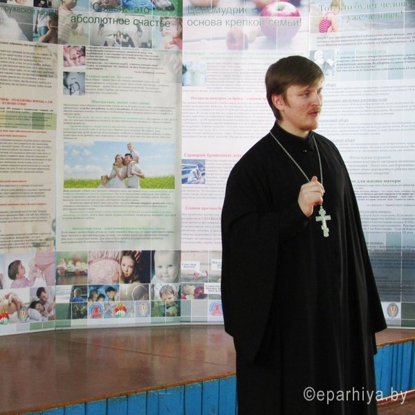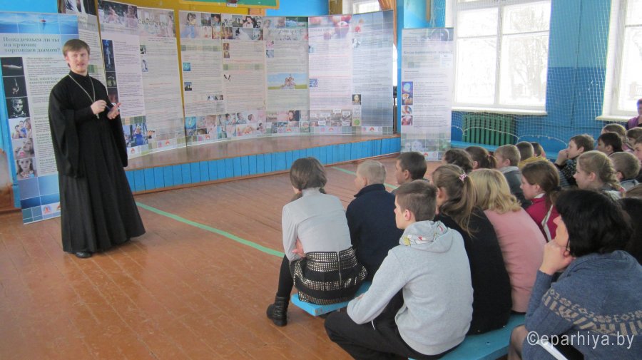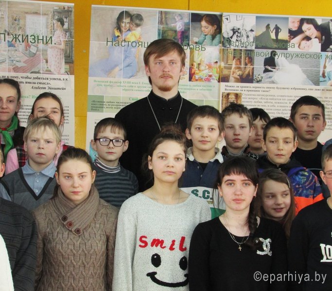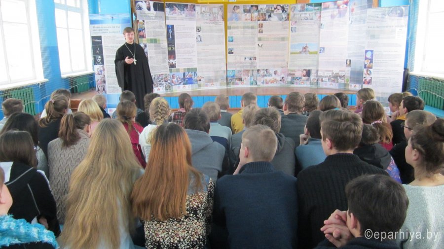 14 февраля 2017 г. иерей Александр Асадчий посетил ГУО «Чеботовичский детский сад - средняя школа» с выставкой «Человеческий потенциал отечества». Священник встретился с учащимися 5-11 классов. Во время своего выступления иерей Александр затронул несколько тем, которые освятили вопросы, касающиеся целомудрия, смысла жизни, пагубных привычек. Священник отметил: «Каждый человек с детства стремиться к счастью. Потенциально человек обладает всеми возможностями, чтобы жить абсолютно счастливо, но ничто великое не приходит быстро и просто. Священное Писание нам говорит, что Царство Небесное силою берется, и употребляющие усилия восхищают его. И как раз целомудрие, свобода от вредных привычек, осознание смысла жизни и настоящая любовь могут сделать человека по-настоящему счастливым. Поэтому человеку с ранних лет необходимо воспитывать в себе твердость и мужество, помнить и искать Царства Небесного, а счастье приложится». По завершении встречи преподаватель старших классов Синегрибова Л.И., выразила искреннюю благодарность протоиерею и заметила, что все затронутые темы являются очень актуальными для старшеклассников, поэтому нельзя переоценить пользу, плодотворность и своевременность подобных встреч со священником. |