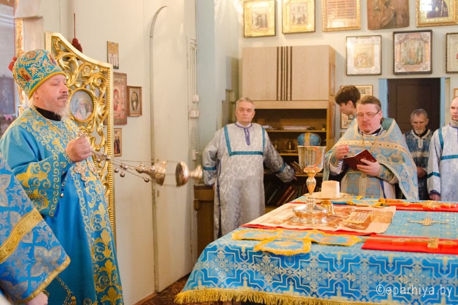 15 февраля 2015г., в день празднования Сретения Господня, Преосвященнейший Стефан возглавил Божественную литургию в храме Николая Чудотворца г.Добруша. Преосвященнейшему сослужили: секретарь Гомельской епархии протоиерей Георгий Алампиев, благочинный Добрушского благочинного округа протоиерей Алексей Пилипенко и духовенство епархии. После отпуста Божественной литургии секретарь Гомельской епархии протоиерей Георгий Алампиев зачитал обращение Патриарха Московского и всея Руси Кирилла по случаю празднования Дня православной молодежи. По окончании богослужения Владыка совершил чин освящения свечей. Преосвященнейший поздравил духовенство и прихожан собора с праздником Сретения Господня и обратился со словом назидания. |